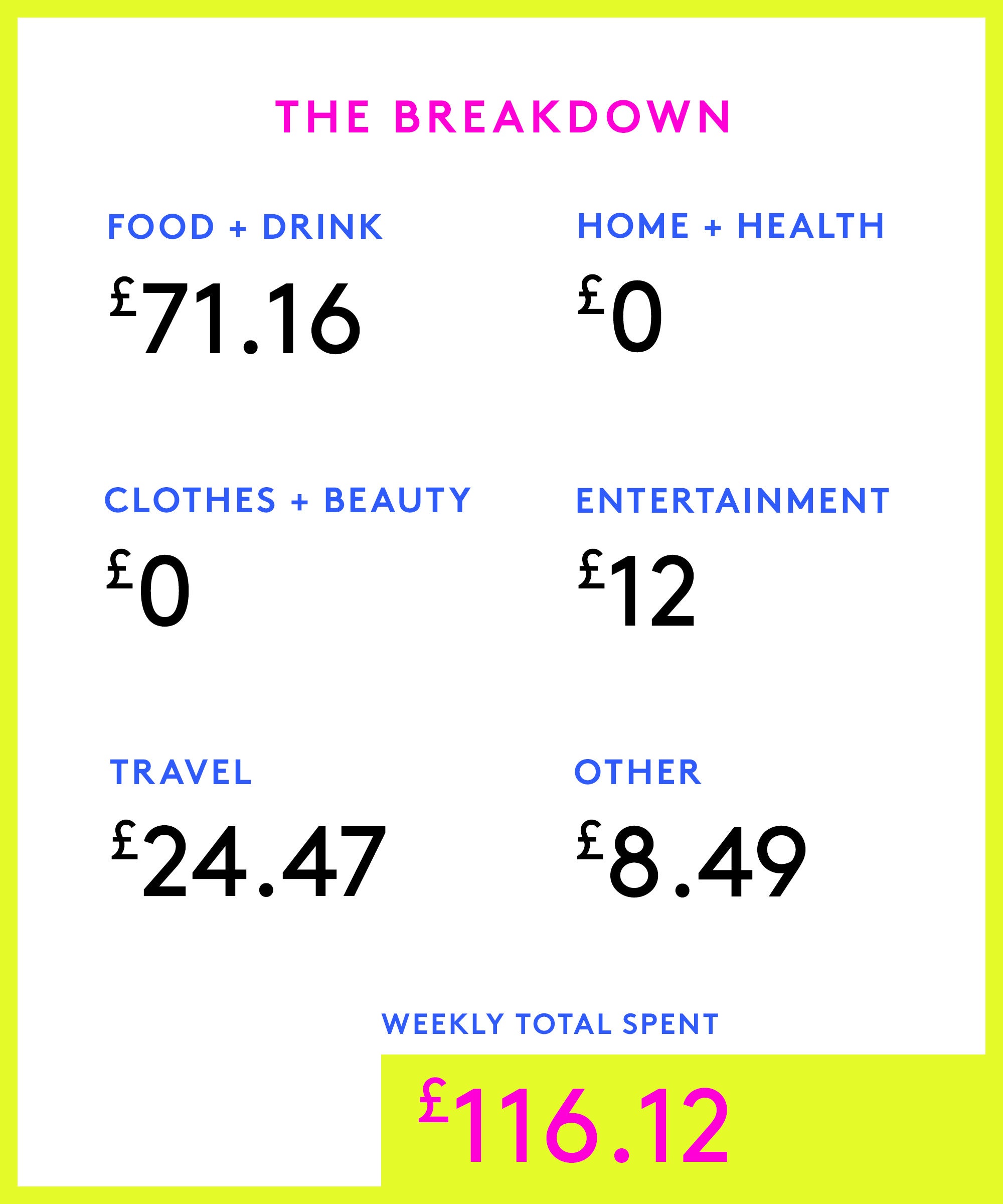 9:30 p.m. — I take an Uber there and back as I would have to take two buses otherwise, and I really don’t feel like doing that. The Uber trips there and back add up to £20.47 in total.