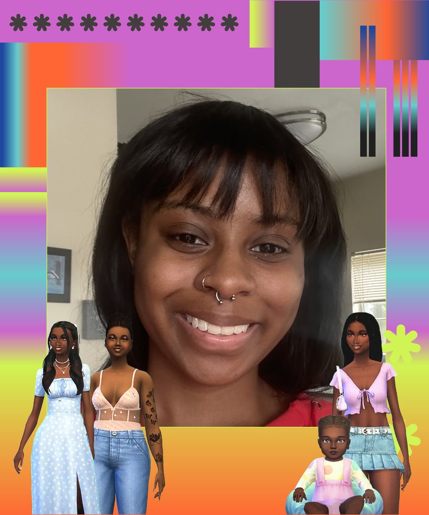 My first Black Sim was named Salem Farrow. She was the idol my inner child never knew she needed. She was the colour of deep warm brown, a similar hue to my complexion, and had wild kinky curls and a plethora of floral tattoos and piercings adorned on her skin. Unlike my previous Sims, I was meticulous with her creation, so much so that it took me days to create her. Mostly because I spent half of the process scrolling through Tumblr, looking for natural hair custom content, prefixed skin tones that mirrored the colour of my complexion, melanin-friendly lipsticks, and natural French tips that blended just right with any deep skin colour. But I didn’t mind the detail or the effort — Salem wasn’t just another Sim to me. For one, she was the leader of my Legacy Challenge (a playstyle where you start with one Sim and build a family that spans generations) but more importantly, she was the culmination of the love and care and appreciation I learned to give to myself.