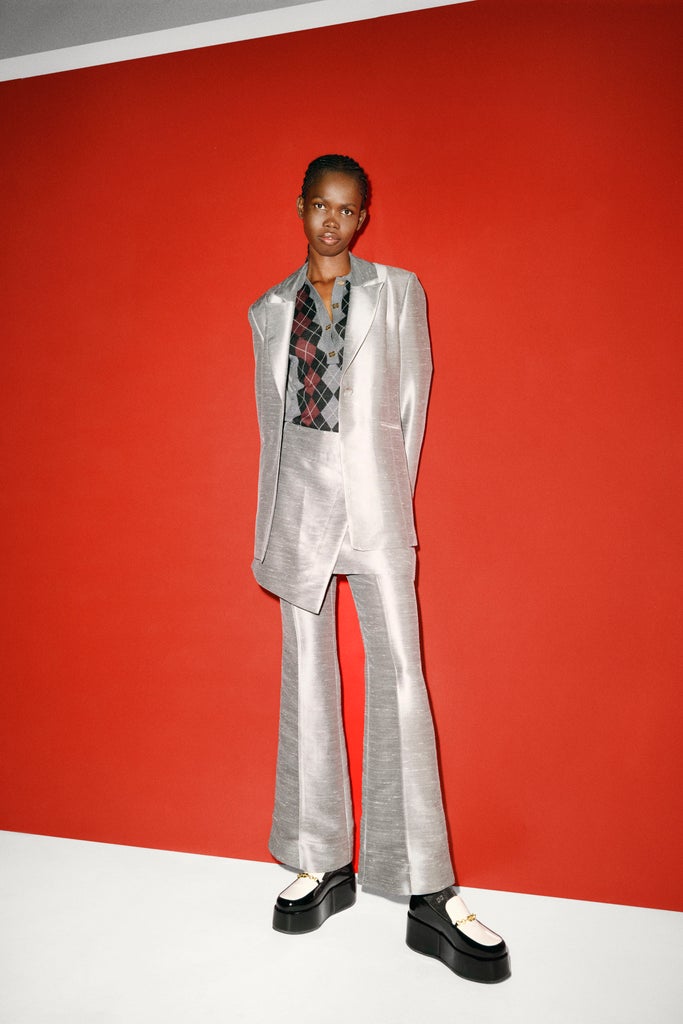 But just because 2010s fashion is trending doesn’t mean that Y2K fashion’s hold is quite over yet, with the skirt-over-trousers trend also stealing the spotlight. Ganni’s new collection had a structured three-piece suit in a metallic colourway (a trend that also doesn’t seem to be heading out the door anytime soon), Mfpen’s womenswear debuted featured a business-core mini skirt worn over jeans and a white shirt, and Paolina Russo playfully paired a pleated skirt with sweatpants.