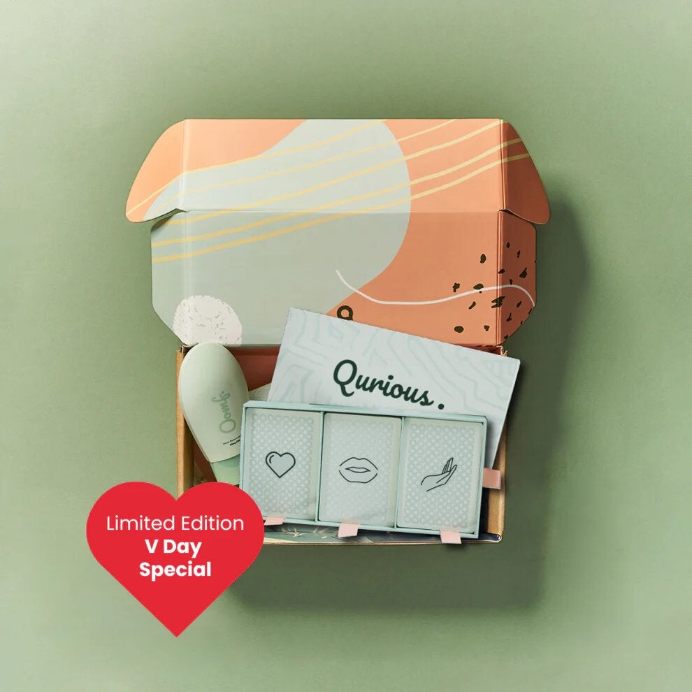 This Valentine’s gift box — which includes a very fun and spicy couples’ card game and a bottle of Oomf lube (for when things heat up) — is a game changer come date night.