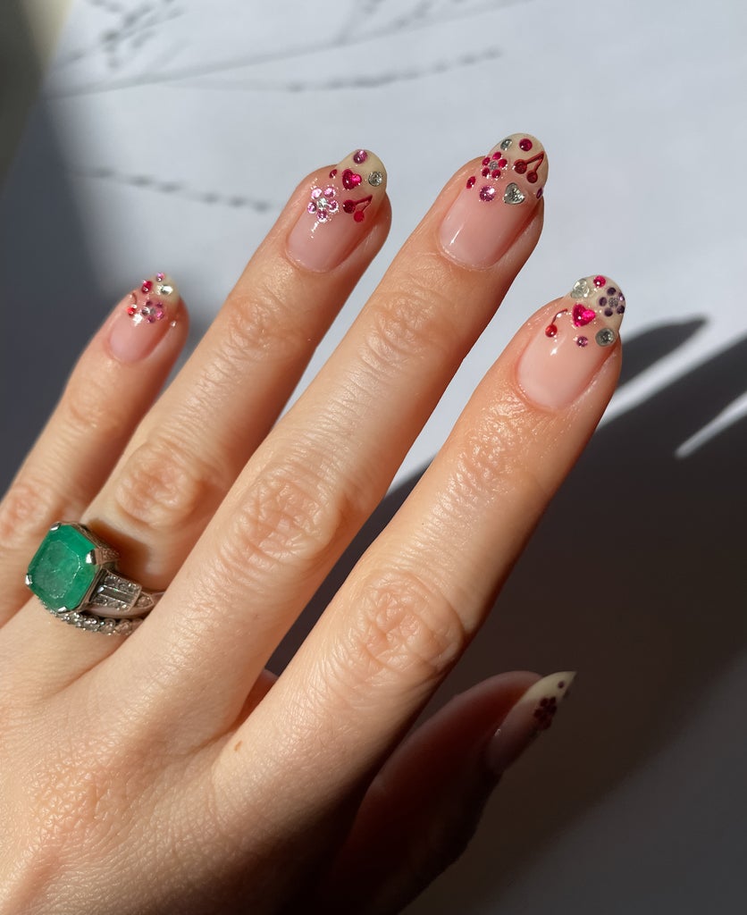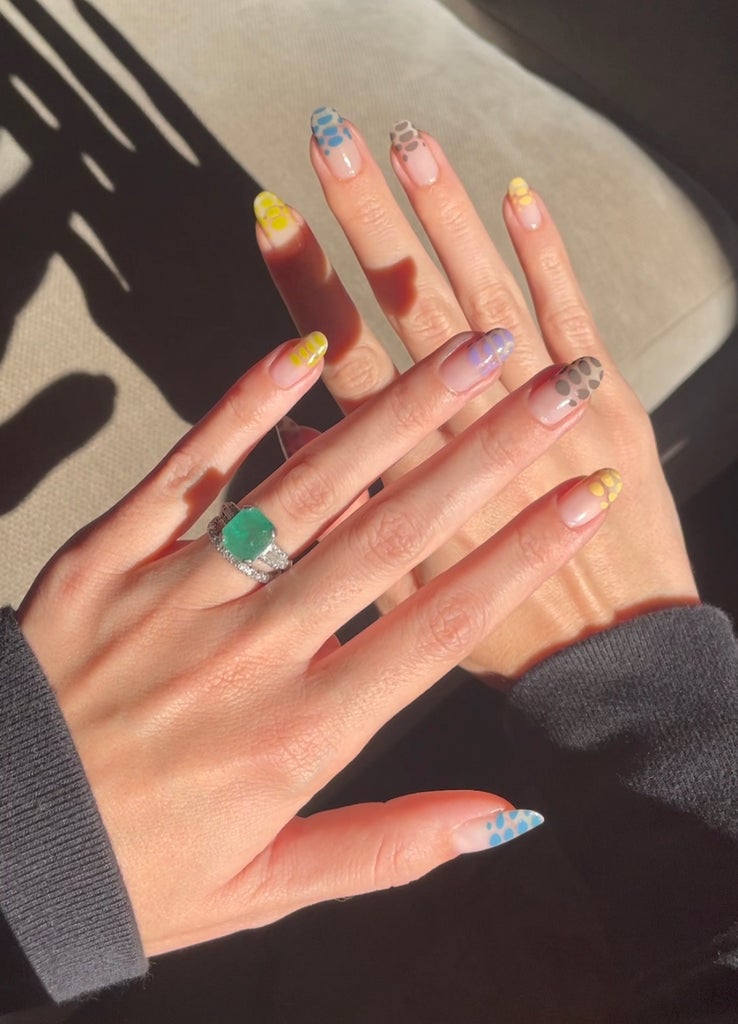 “A ‘deconstructed’ French is a manicure that alludes to a traditional French manicure but without the hard outline on the free edge of the nail,” explains Jess Brush (aka @nailbetch on Instagram and TikTok). Technically, any design on the tip of the nail falls under the ‘deconstructed’ umbrella. “Little designs on just the tips of the nails: an ombré French, a two-toned French, an abstract French, are all examples of a deconstructed French manicure,” adds Brush.