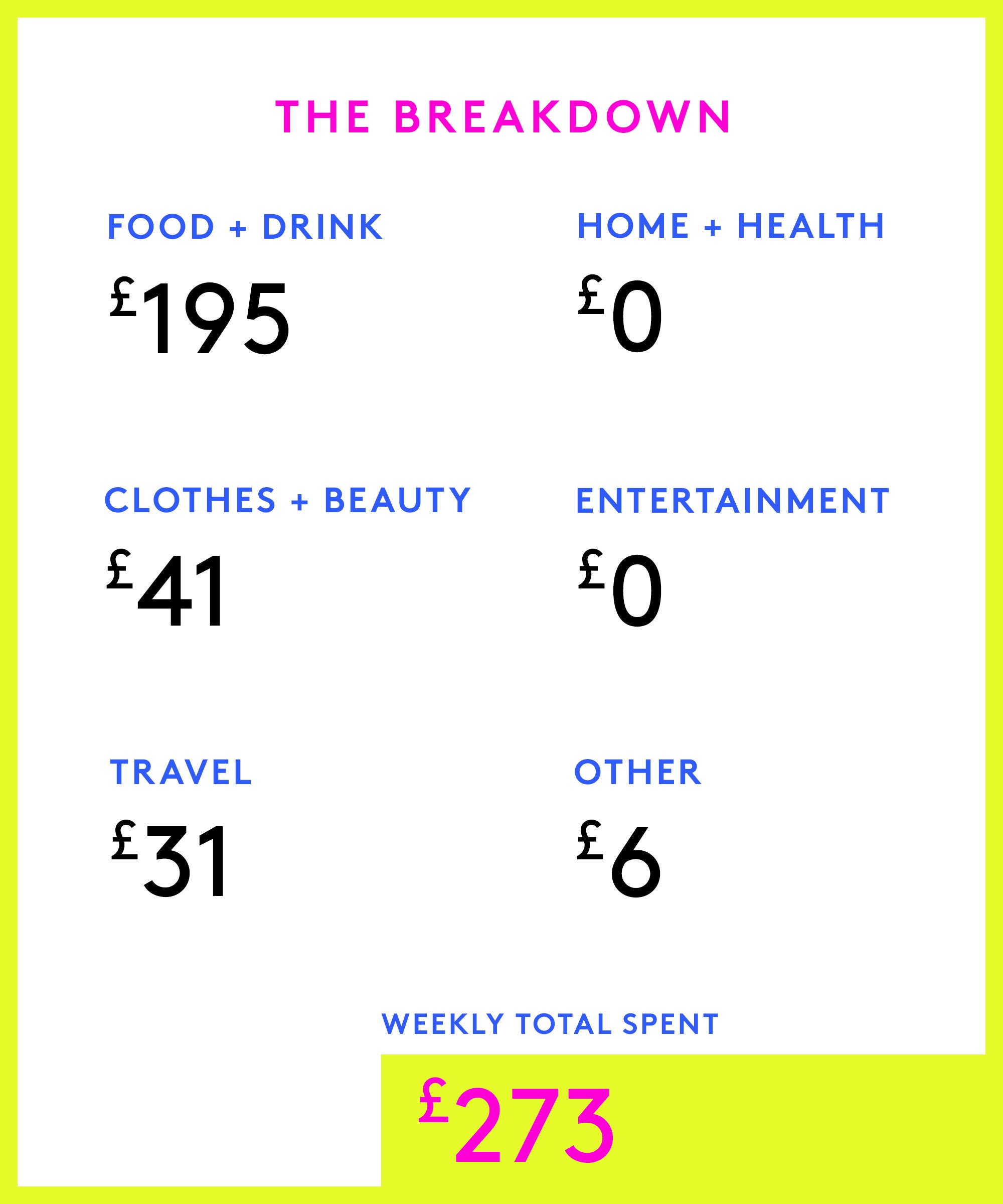 “Given that this includes a holiday away I don’t think this is awful at all. Embarrassingly, I don’t think this would’ve been much lower if I had spent the weekend in Newcastle as there was a lack of shopping this week. I think my biggest issues are the small purchases like iced coffees. I don’t even view them as a luxury — something they should be on my wage. I definitely need to look at budgeting better and prioritising savings as I think my lifestyle choices can often be silly and unnecessary.”
