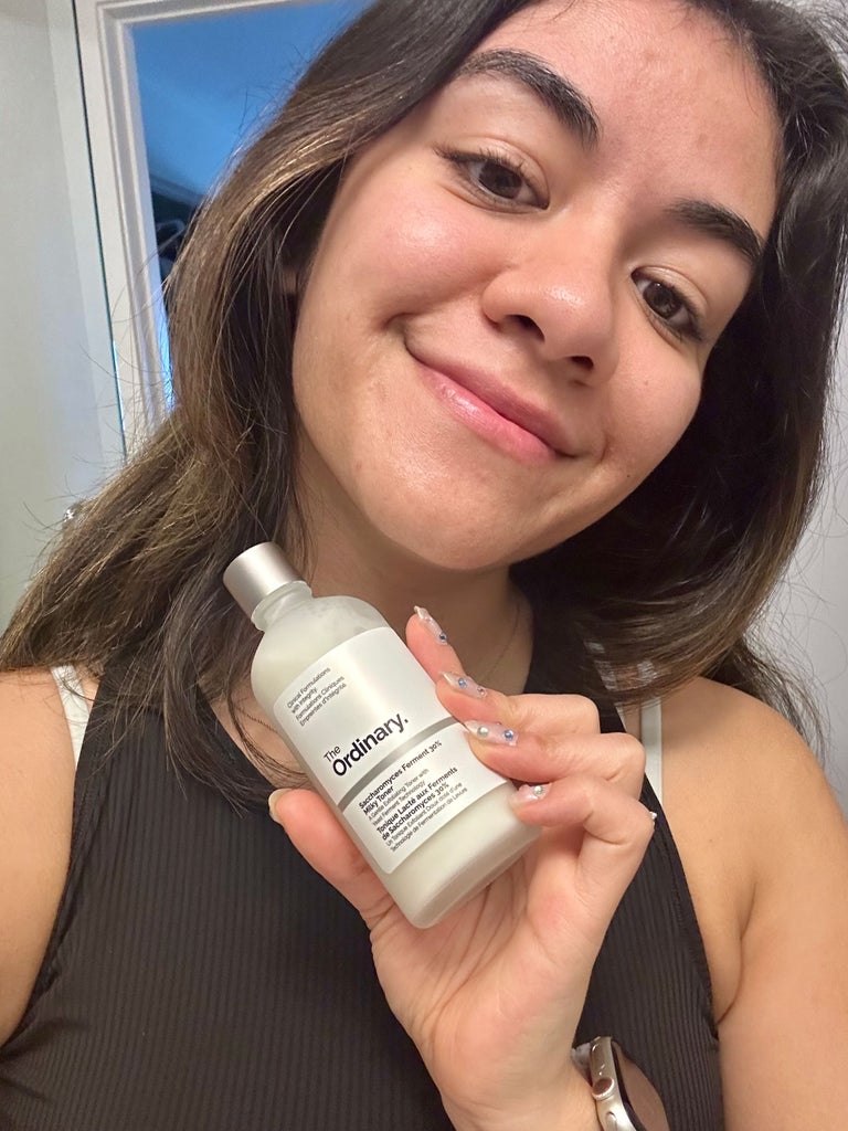 I have combination-oily skin, and love to use exfoliating toners at night to keep my skin clear and balanced. I prefer to pat the toner on my skin with clean fingers versus using a cotton pad since I find that the latter absorbs more of the product than my skin in the process. The Ordinary’s Milky Toner was lightweight and had a faint, yeast-y scent. (Saccharomyces is a type of fungi encompassing various yeast species and appears second to water on the ingredients list.) It didn’t bother me in the least, but if you’re used to your skincare smelling like a garden, be forewarned. According to the brand, Saccharomyces Ferment 30% Milky Toner is meant to address uneven tone and texture while providing hydrating benefits, making it a suitable option for sensitive types that don’t tolerate glycolic acid as well. I started using it nightly (I avoid using anything exfoliating in the morning since it can increase skin’s sensitivity to UV rays), after cleansing and before serum and moisturiser. Within a month of consistent use, I felt like my skin was softer and clearer than before, and with a natural, healthy glow.