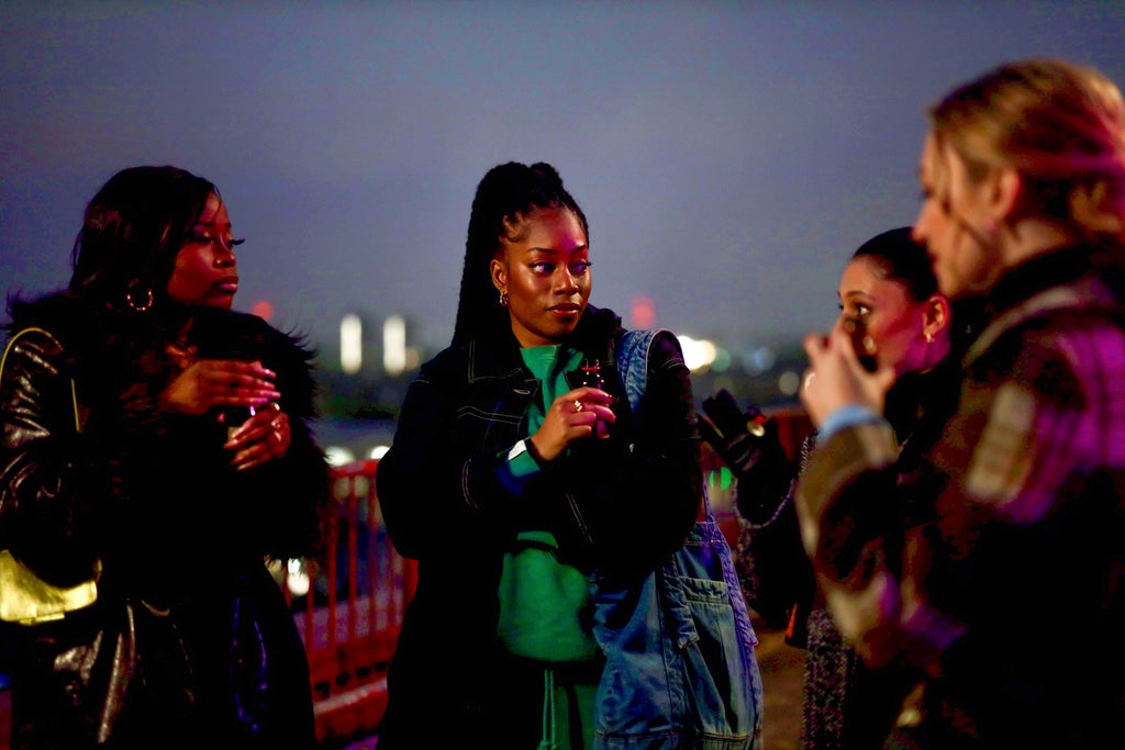 “Leave her alone, because If we spill your tea, it would be real hot, and piping, and delicious for us to consume,” R&B star turned TV scenestealer, Bellah, tells me during a press trip put on by Onyx Collective which brought media and influencers from around the world together in South London for a couple of incredible days immersed in Queenie’s world. Bellah plays Queenie’s ride-or-die Kyazike and her passionate defence of the character (who has faced criticism and an onslaught of discourse since the book was released in 2019) is spoken like a true best friend. “Shut up, go outside, touch grass, let her do her thing. It’s okay to be messy. She’ll get it together. And even if she doesn’t, mind your business.” Bellah’s no-bullshit, hilarious delivery in person is similar to that of her character who, at every wrong turn, is there trying to steer Queenie back to her path — or enabling her to keep going sideways, like a proper friend. Kyazike playfully ribs Queenie about her interest in white men (she refers to her ex Tom as her “mayo mister” and a “parchment paper Papi”) and is the only person in her life who points out how destructive her seeking validation in white men really is, but she’s also the person who is ready to pick up the pieces when things go really left.