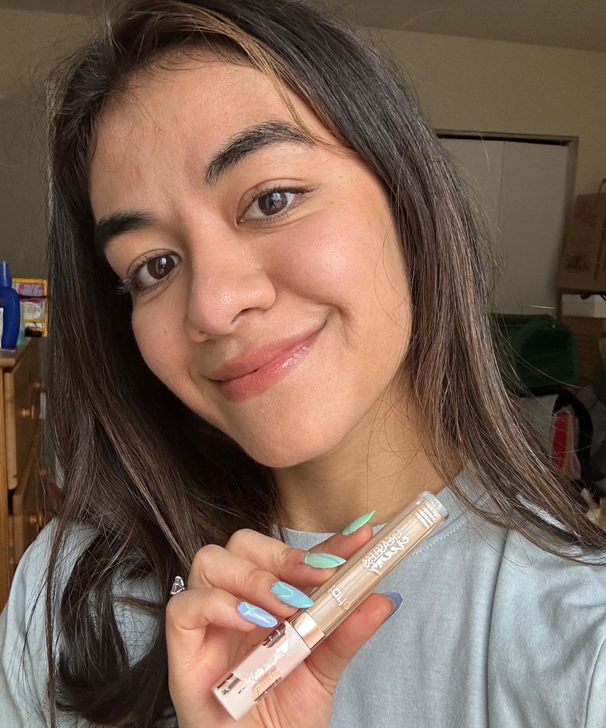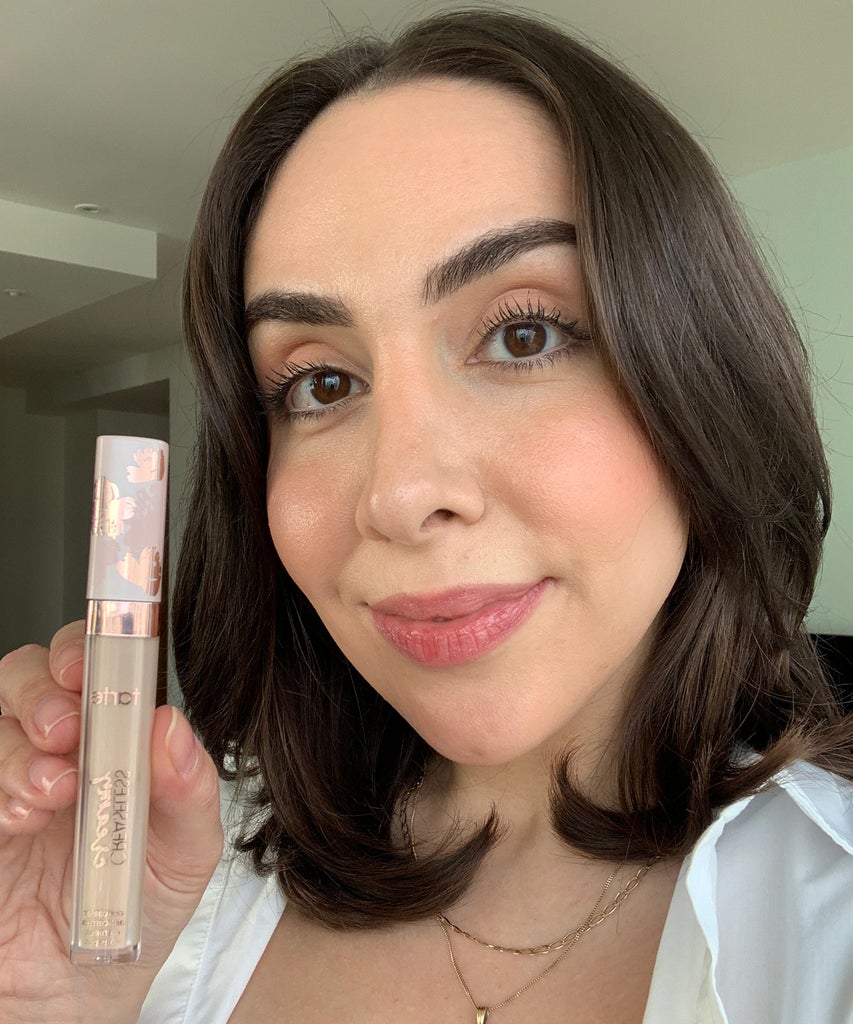 “A truly creaseless concealer is an impossible feat. We all have skin texture and fine lines, and even the smallest facial movement can disturb painstakingly-applied makeup. That’s entirely normal and perfectly natural. Makeup isn’t meant to be a mask. That said, this new concealer is far less prone to obvious creasing compared to the hundreds of others I’ve tried. It’s all in the hydrating, moisturising ingredients including niacinamide, vitamin E, and omegas 3 and 6. To really put it through its paces, I used it in place of foundation, dotting it all around my face as well as my under-eyes. While the coverage isn’t as substantial as the brand’s Shape Tape Concealer (my ride or die — seriously, it’s incredible) it sank into my skin quickly with no need for vigorous blending. It felt so comfortable on my skin, I totally forgot I was wearing it. Here’s the real test: It survived London’s hottest day of the year so far (30 degrees) and even a swim. Another thing I love about it is the skinny, precise doe-foot applicator, which makes light work of concealing dark circles and breakouts. I love this — so much so, it has replaced the Kosas concealer that I’ve been using for months.” — Jacqueline Kilikita, Deputy Beauty Director