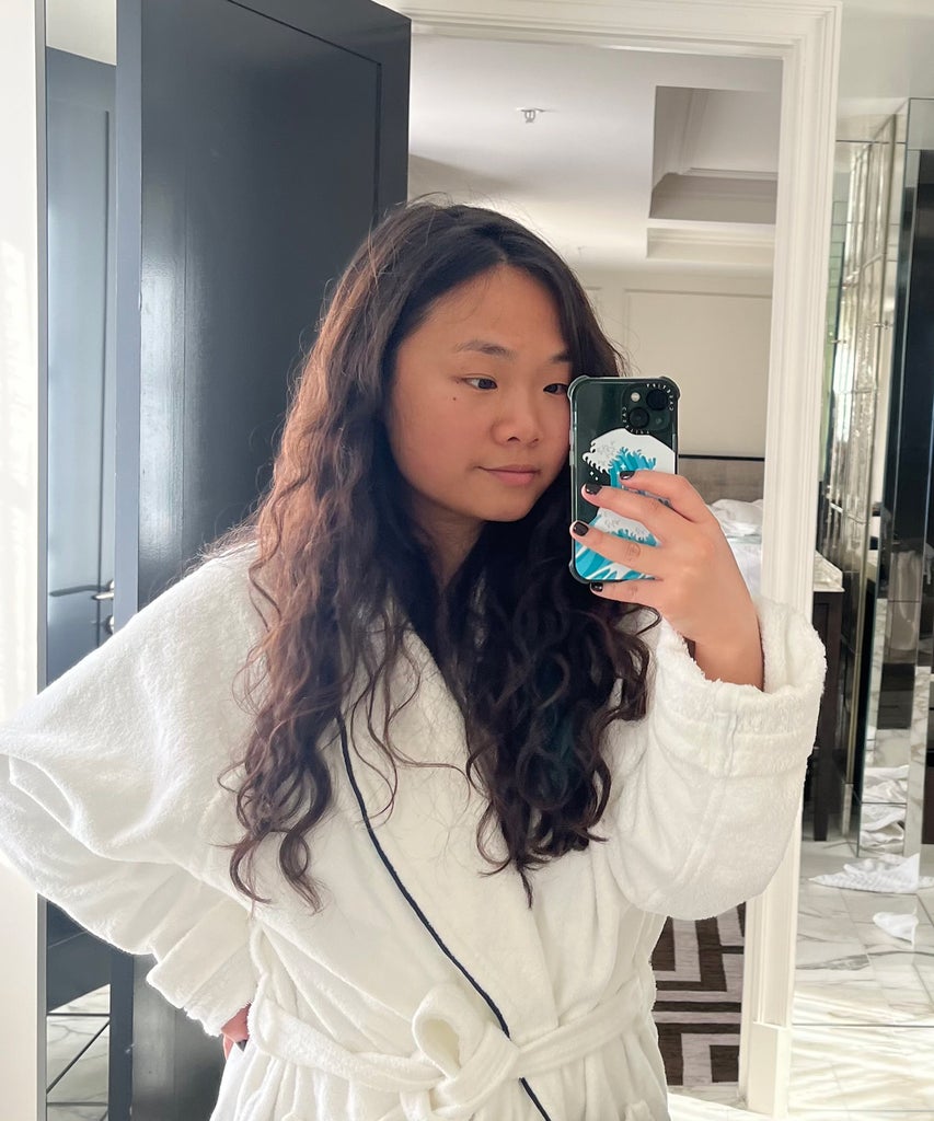 For my skincare routine, I typically keep it very minimal (a face mist and lip mask). I finish off my routine with Laneige Original Lip Sleeping Mask and Bouncy & Firm Sleeping Mask, which I use on my neck for some extra hydration. (On the occasion that I have a stubborn breakout, I like using e.l.f Blemish Breakthrough Stick It to Zits Pimple Patches overnight, which are always super pleasing to remove the next morning.) All that’s left to do is turn down for bed. I’ve been sleeping on satin pillowcases for years and I simply can’t turn back. They’re so silky smooth and cooling, and I find that I don’t wake up with crazy creases on my face, like you sometimes do with standard cotton pillowcases. To sweeten the deal, I spray ThisWorks Sleep Plus Pillow Spray onto my pillows, which makes them smell like lavender and chamomile and helps relax me even more for a good night’s rest.