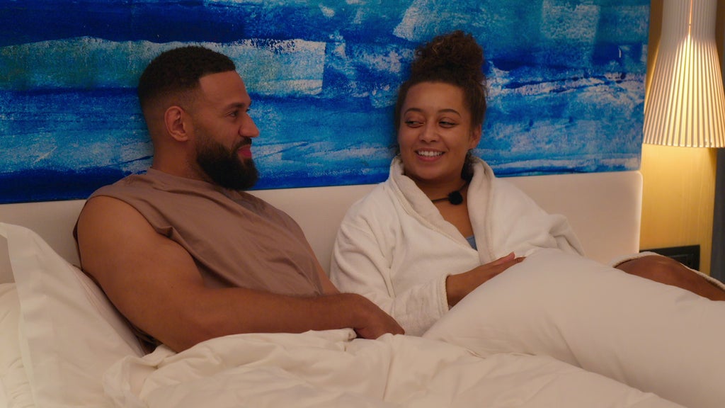 In series one of the UK edition, we follow brand and marketing head Nicole, 29, and her love triangle between product design manager Sam, 31, and structural landscaper Benaiah, 33. The visual dynamic of two men fighting for a Black woman’s affections to an audience of millions is a relative rarity within the British reality TV world. With Black British women’s journeys on these programmes overwhelmingly shaped by Black and mixed-race men — not a single Black woman on Love Island UK has left partnered with a man not of Black heritage, for example — this interchange proves even more uncommon.