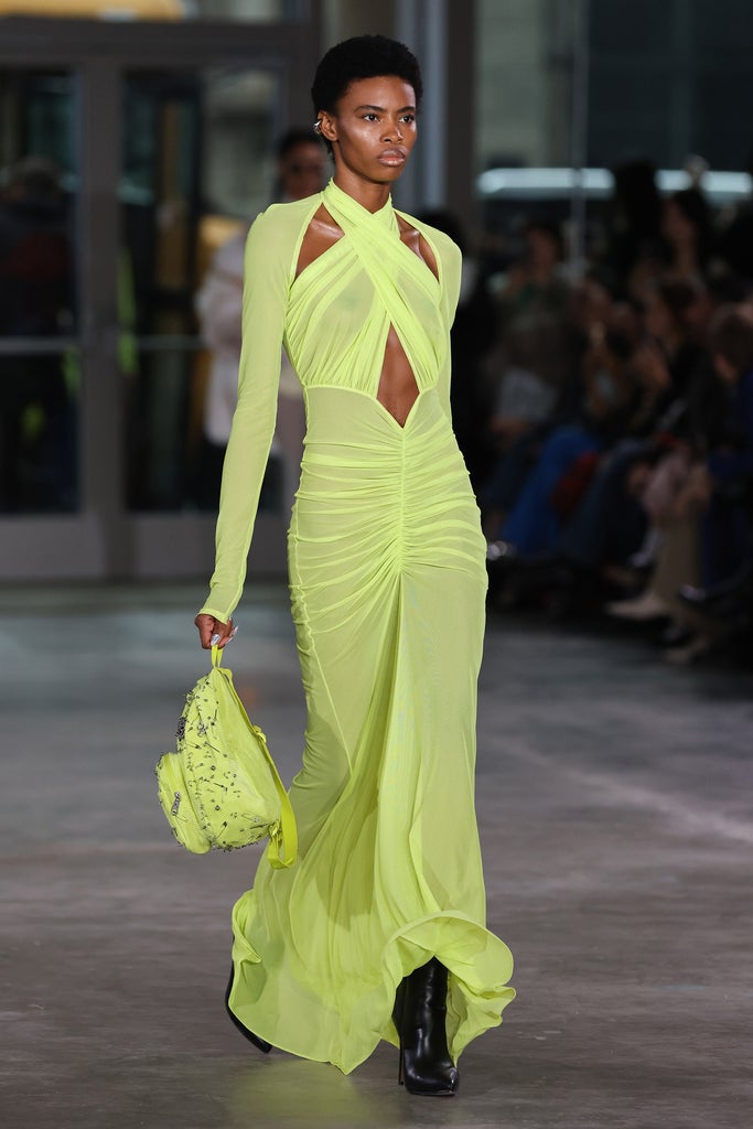 But wait, there’s more! Autumn is bringing a variety of textures and shapes that redefine what it means to dress up in 2024. Whether you’re emboldened to unabashedly display what’s underneath or prefer to tease just a little skin, sheer fabrics dominated the runways from New York to Paris. Similarly, rich red hues, from siren shades to deep jewel tones, commanded attention in every material imaginable, from second-skin silk to ruched weighty knits and sequins.