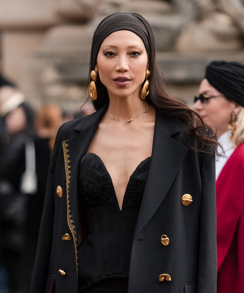 The easiest way to elevate a simple outfit? An eye-catching pair of earrings. Designers played with this trend in a whimsical way at Area and Simone Rocha with motifs like hearts and flowers, as well as a more grown-up approach with sculptural metals and details that mimic vintage jewelry design techniques at Saint Laurent and Chanel. Grab your favourite LBD, slick back your hair, and put on a pair of conversation-starting earrings.