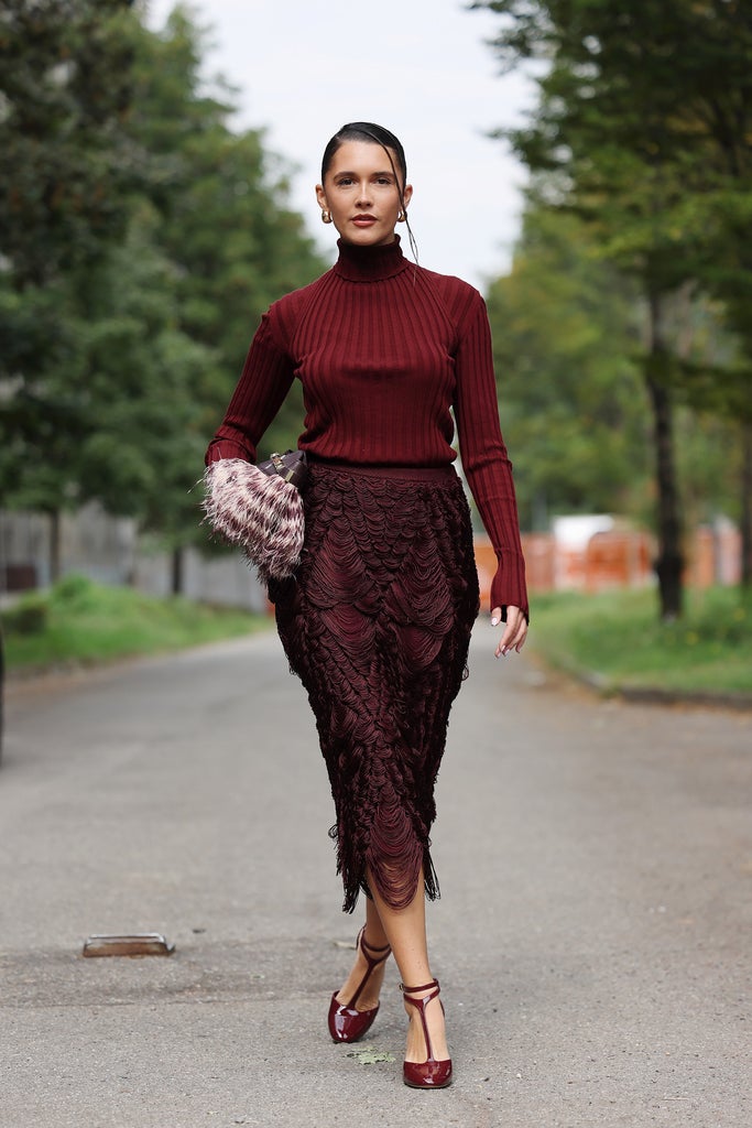 While red is a holiday classic, the rich shade was on repeat on the autumn 2024 runways as designers offered up options ranging from dresses to handbags and stockings in a juicy, dark cherry. If a red dress still feels a bit too statement-making even in a darker shade, go for a neutral look and punctuate it with a red pair of heels and a coordinating clutch.