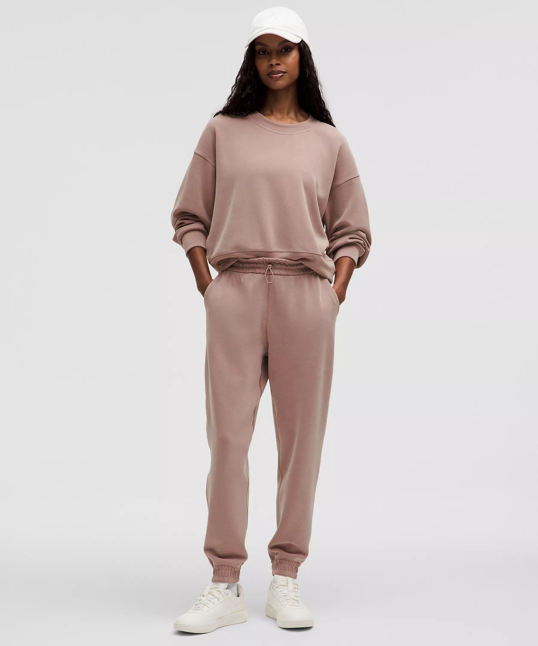 The ultimate blend of cosiness and polish, this Lululemon set pairs a perfectly oversized cropped crew with high-rise joggers for a sporty-sleek vibe. Made from Lululemon’s peach-fuzz Softstreme fabric, both pieces offer that soft, brushed finish and a weighty drape, with a four-way stretch that keeps comfort in check. Editor’s note: I have this sweatshirt, and the fabric is uniquely silky-smooth, with a cooling touch that somehow stays oh-so-cosy. Loungewear sorcery.