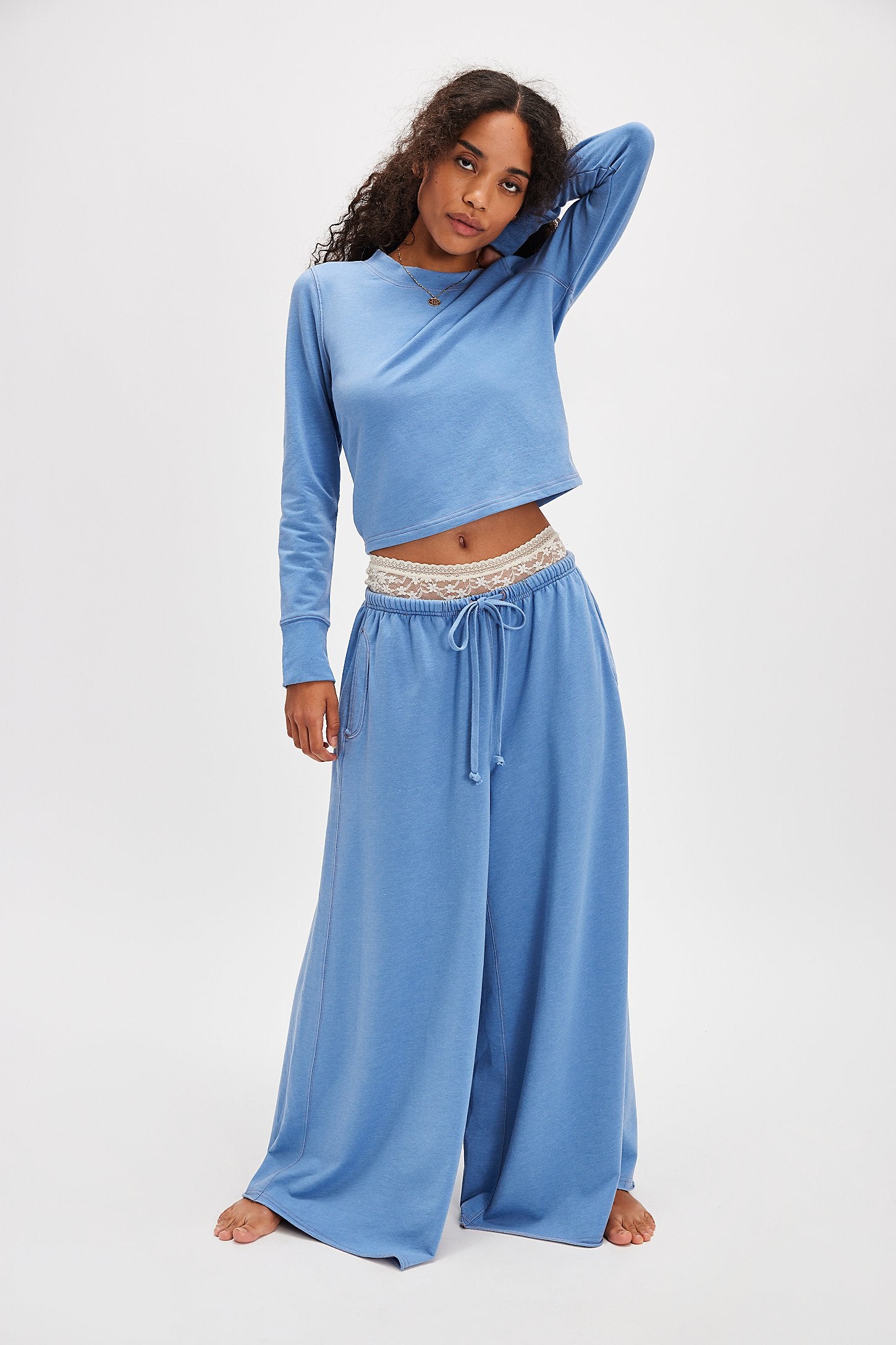 Soft, breezy, and unmistakably cool — this Intimately set from Free People checks all the boxes. The cropped top and ultra-wide-leg pants strike that ideal balance of ease and intentional style. With trend-forward details like a low-rise drawcord waistband and drop-crotch design, this duo brings serious style without compromising on comfort.