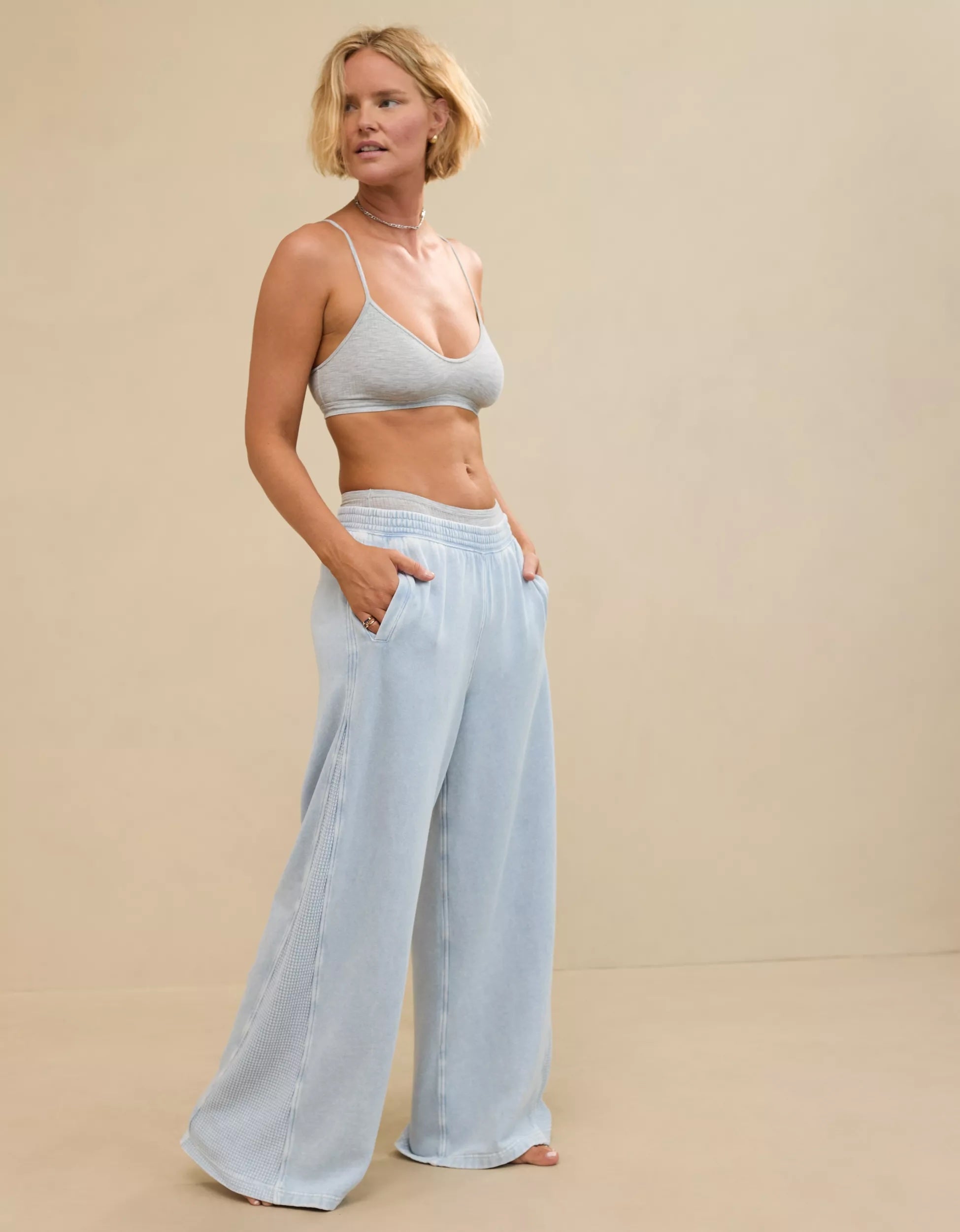 This Aerie set adds a fresh twist to lounge dressing. Featuring a quarter-snap pullover and high-waisted wide-leg bottoms, it plays with proportions for an oversized look so cosy, you’ll be tempted to wear it straight to bed.