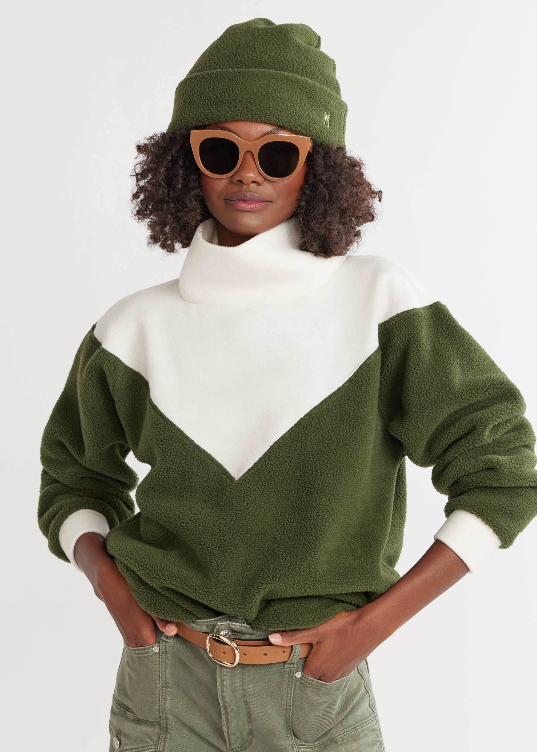 Dudley Stephens has redefined what fleece can be, trading the typical outdoorsy vibe for a refined city-ready look. Take this chevron mock-neck and jogger set — it’s far more than a snug moment for cold days; it taps into that retro prep style that’s huge for autumn 2024.