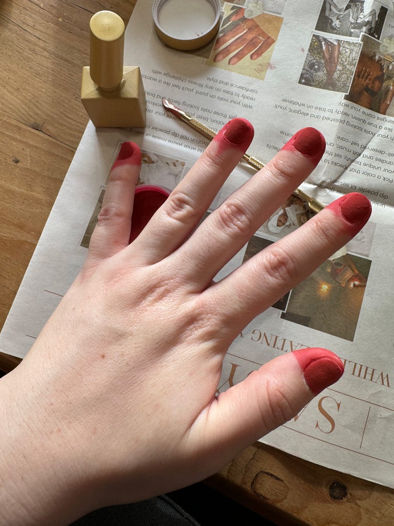 As for the results, I am pleased. The colour is vibrant and glossy, and my nails feel very strong. While it did take a while to master, I found the process quite fun — I carved out a few hours to chill with a cup of herbal tea and some music to listen to.