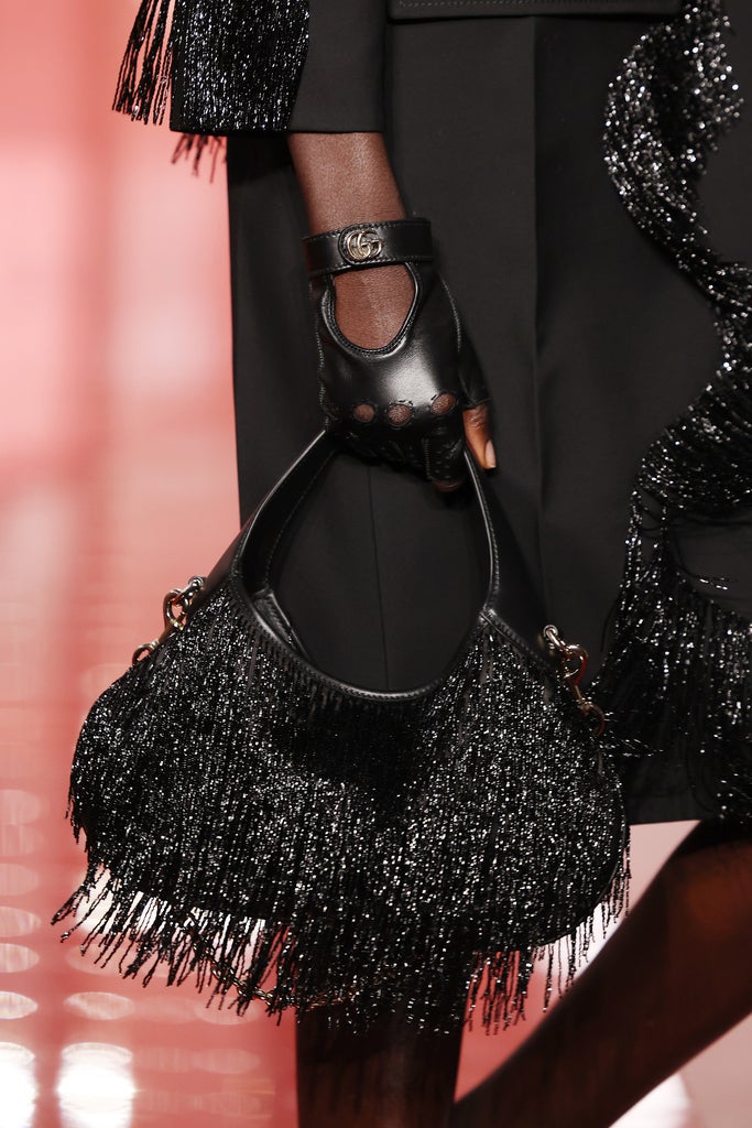 Dial up the drama with a glistening, light-reflecting bag. On the runways, the in-your-face look has come in many flavours: Louis Vuitton and Chanel bring the glamour with carryalls dripping in rhinestones and sequins, while Gucci delivers a silver purse festooned with tiny circular disks all over. These eye-catching bags are real conversation-starters — the perfect plus one for a swanky soirée.