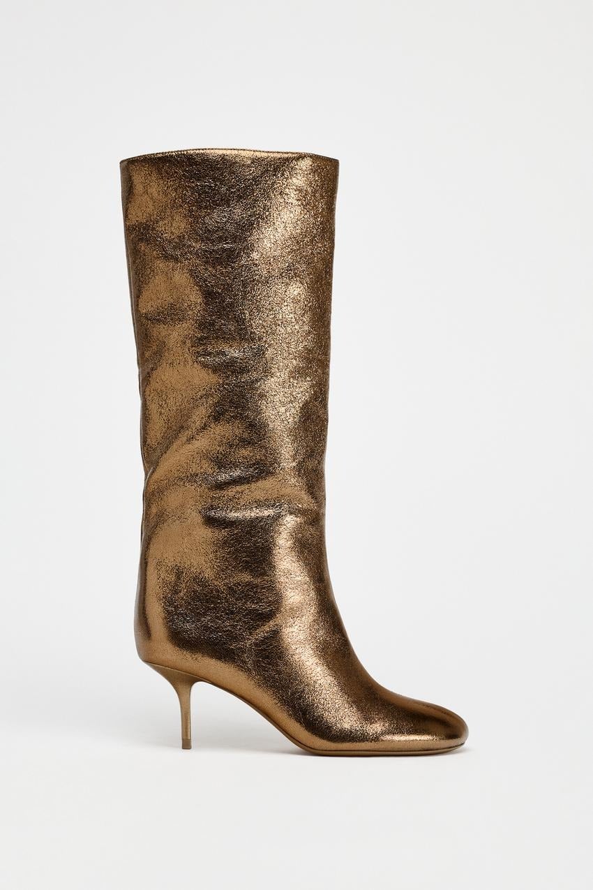 Zara Metallic Kitten Heel Boots, $, available at Zara