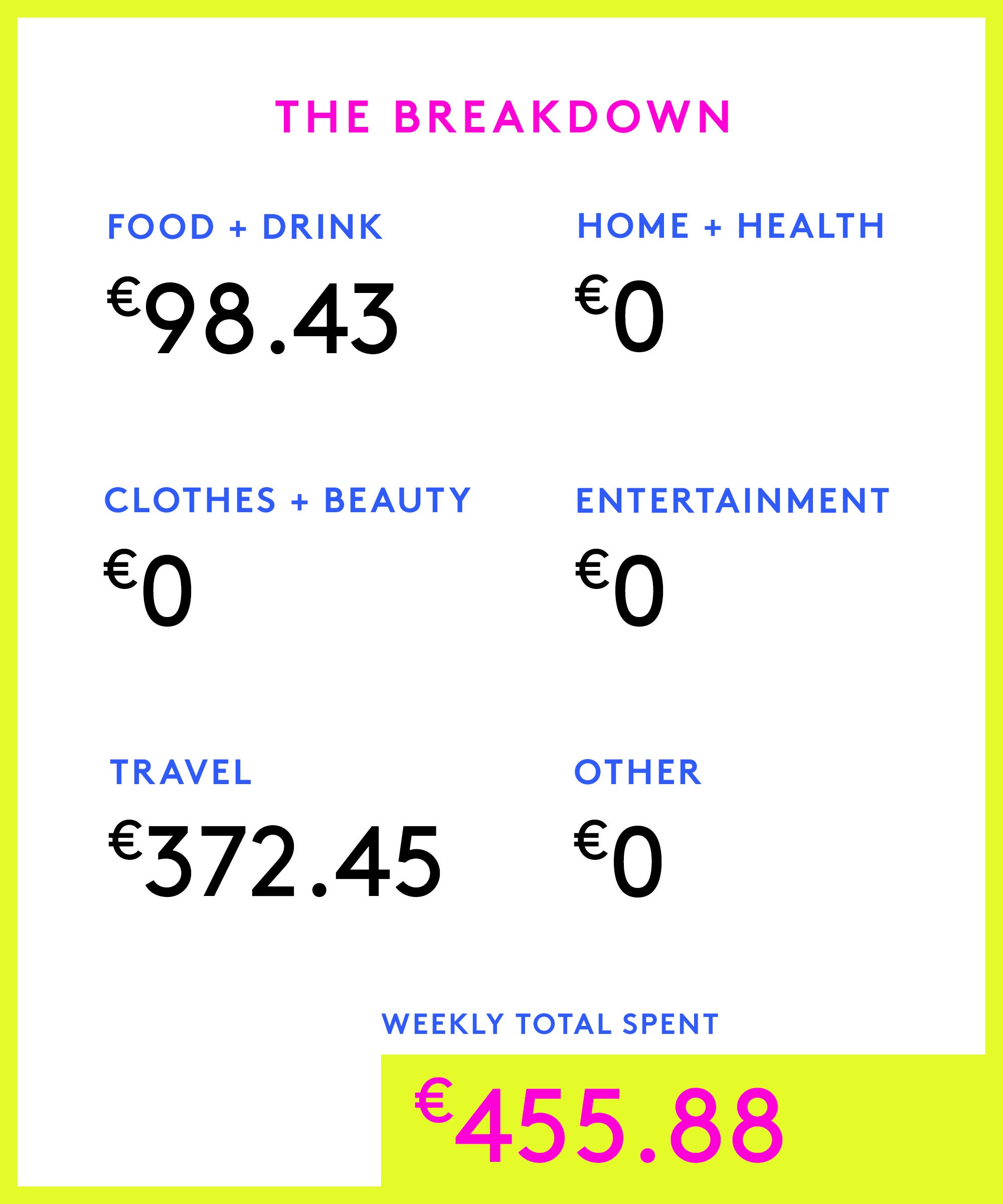 “It was very interesting to monitor my money this week. Obviously, it was not a typical week as I bought flights and booked a hotel, which I paid for using money from the joint holiday savings account. It was actually a Money Diary which inspired me to set up a dedicated holidays account, so it feels like I’ve come full circle! However, I think the social aspect was fairly typical, as I go out with friends three to four times a week. It was also good to monitor how much we spend from our joint account; I monitor my personal spending closely but not our joint spending so much and I was happy to see it was very reasonable. Doing this Money Diary has made me very glad I fought for expenses for my trips to London, as it would have made this week a lot more expensive. If I can encourage anyone reading this to do anything, it’s making sure your company is not taking advantage by not paying your expenses or expecting you to do work-related things during your personal time!”
