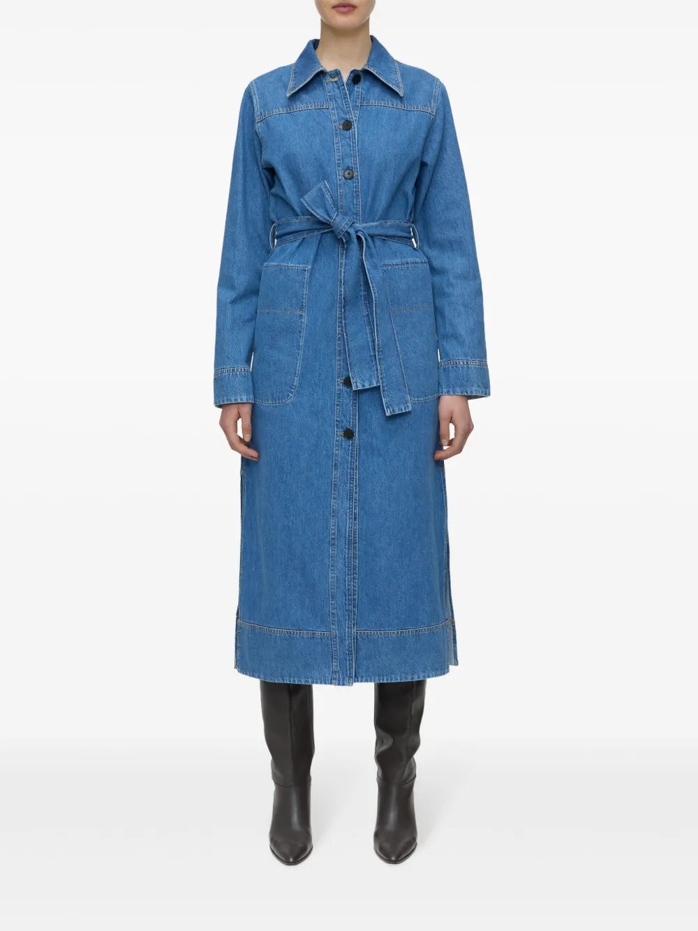 Minimal and sleek, this column midi delivers denim with polish — belt it for definition or keep it streamlined for a more relaxed look.