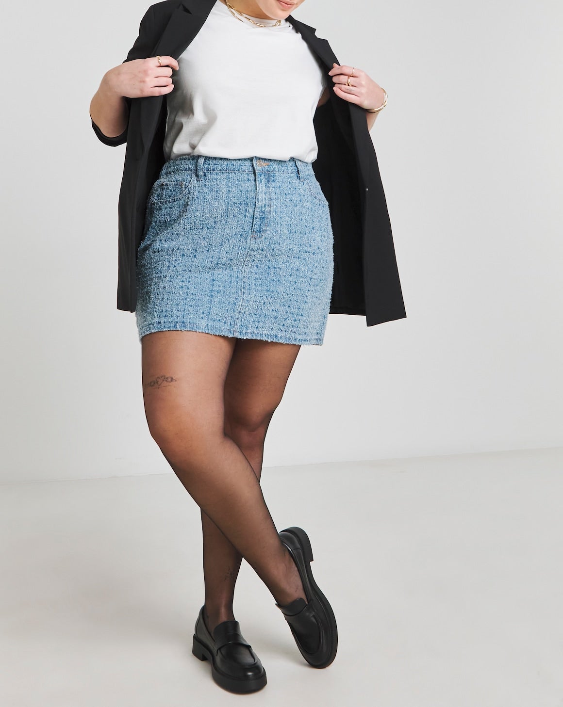 Simply Be Distrssed Denim Mini Skirt, $, available at Simply Be