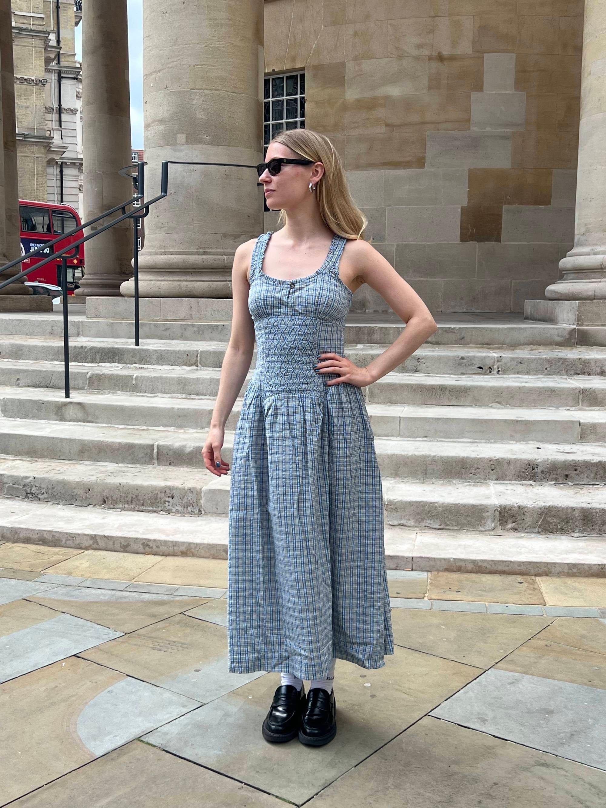 “When it comes to hot weather days, wearing lightweight clothing is the only way to go. This dress from Damson Madder is made from 100% organic cotton, meaning it feels airy to wear and doesn’t cling to the body when it gets humid. With a side zip closure, this dress feels like the easiest thing to throw on, with sweet bodice detailing and stretchy ruching at the back. I love a casual checkered look, and the fact that this dress comes with a matching scrunchie makes it a 10/10 for me.”— Alicia Lansom, Culture Editor