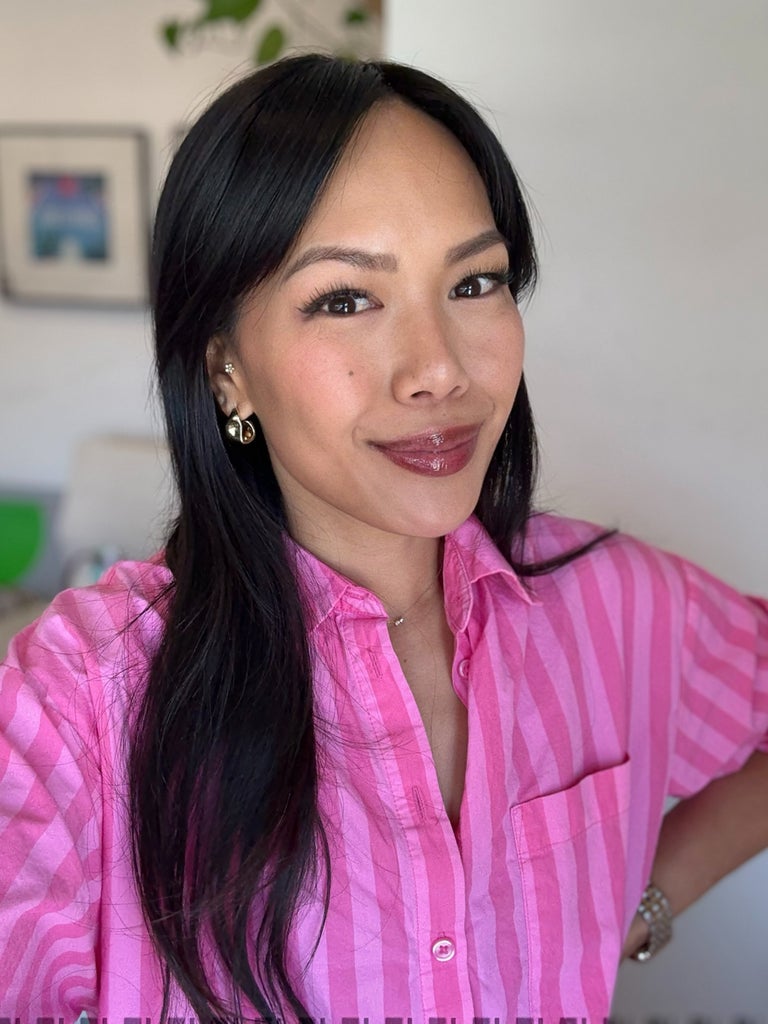 “I’m a huge Olivia Rodrigo fan, so I was stoked to swipe on Million Dollar Berry, which happens to be the shade she wore for the JuicyTreat ad campaign. I have to say that this juicy wash of plum looks so pretty on both of us. Right off the bat, the gloss feels noticeably more conditioning than many lip oils and tinted balms I’ve tried. While most lip products claim to have moisturising benefits, a lot of them don’t go the distance — my lips usually dry out and get flaky after a few hours. But thanks to 20% squalane in the formula, which smooths and hydrates, my lips feel plump and comfortable for hours. It’s like wearing an ultra-shiny lip mask that seals in moisture and blurs fine lines for a glass-like finish. Special mention goes to the angular applicator, which makes it easier to trace along my Cupid’s bow with precision.”