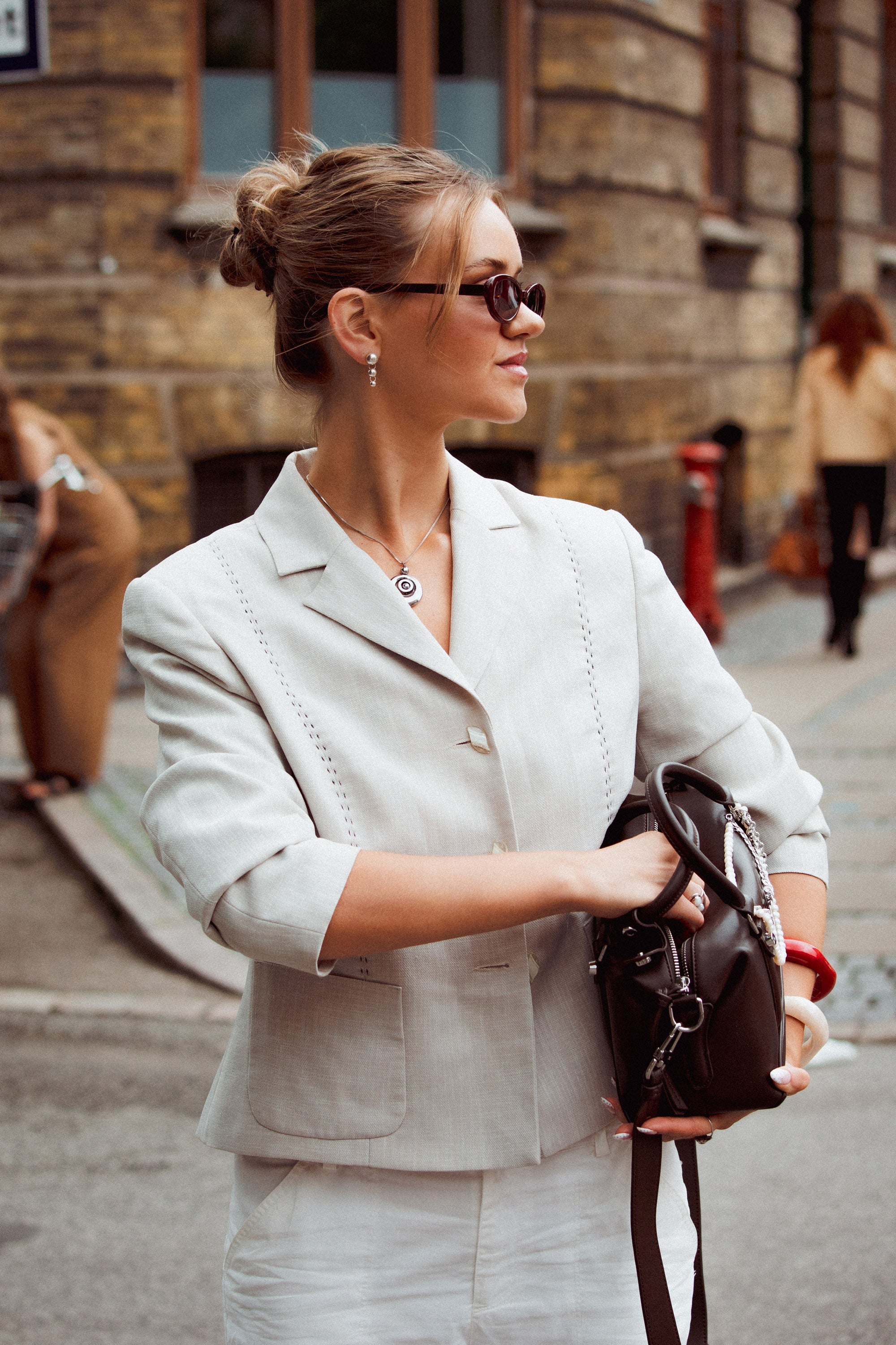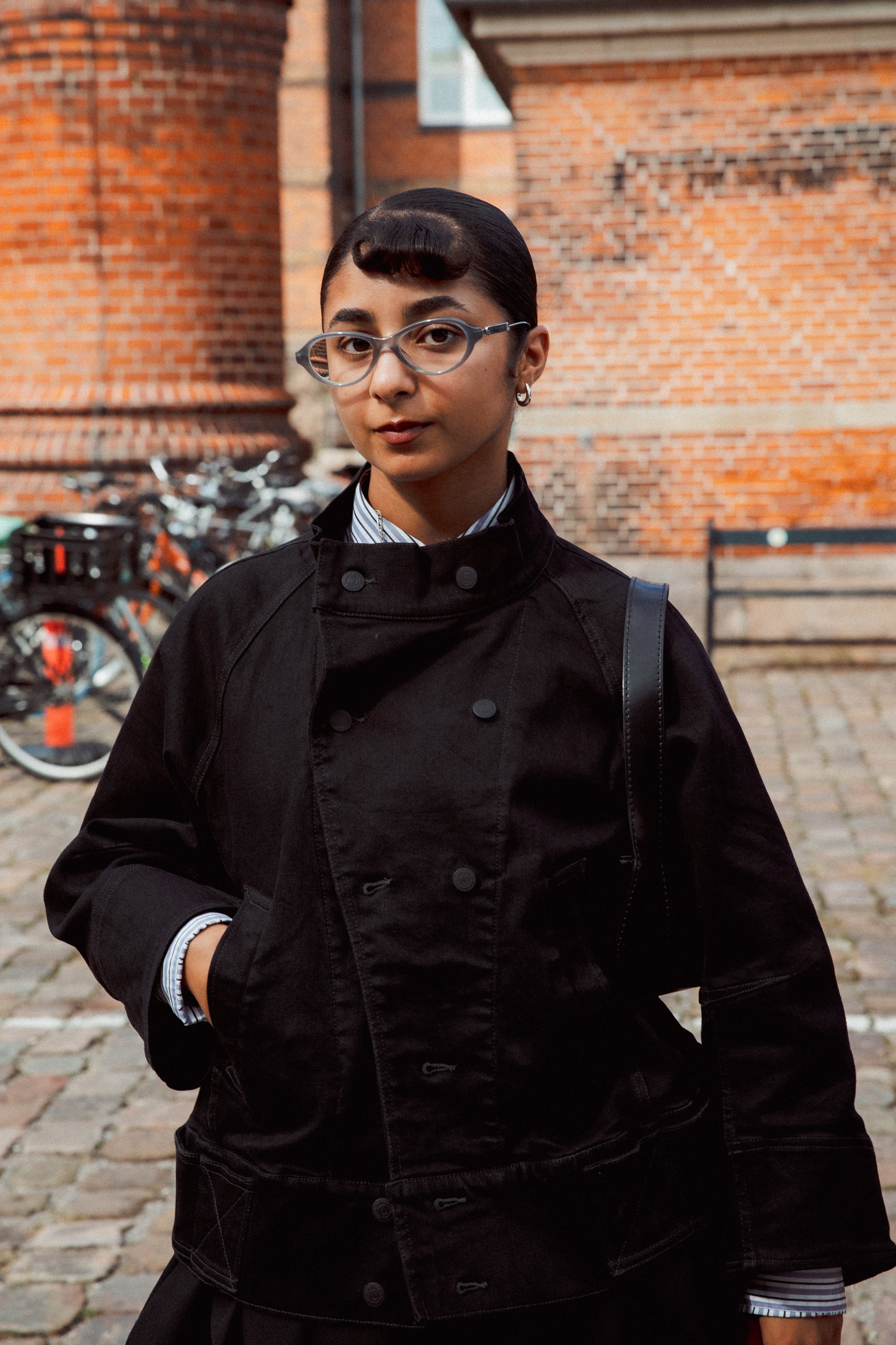 The slicked-back bun is making a comeback in Copenhagen this week, but with a more relaxed vibe than before. Start with a simple, low, loose bun and pin random sections close to the head using hair grips. Finish by pulling out a few face-framing strands.