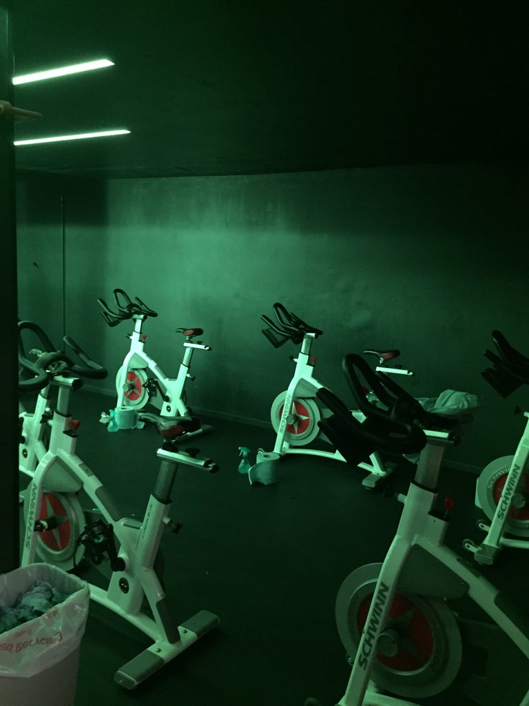 Upon entering, we filed downstairs (still in a socially distant queue) into a changing area that smelled distinctly of disinfectant before putting our belongings in lockers, picking up some recently cleaned hand weights and heading into the studio. The number of bikes was, unsurprisingly, greatly reduced with class numbers limited to about 12 to accommodate social distancing. Each bike also had a disinfectant spray and roll of paper towels for us to wipe down our bikes and equipment after the class.