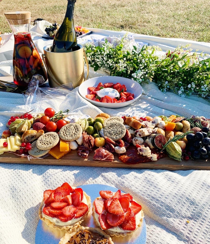 But this summer transformed picnics into sophisticated pique-niques. For once we were blessed with scorching 35 degree heat and for those of us without a garden, heading to the nearest beauty spot has helped us salvage a moment of joy from this tragic year. Scrolling through social media feeds proves that traditional picnics are very much in. Take 24-year-old blogger Yasmin Chelsea from London, who elevated her weekend picnic from the local park to Hitchin’s lavender fields, a popular beauty spot. Or entrepreneur Mariam Jimoh, from London, who put us all to shame with her glamorous spread of cheeses, charcuterie and a bottle of Dom Pérignon.