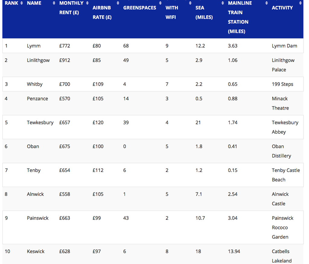 The folks at Small Business Prices compiled the list by taking several factors into consideration: the town or village’s average monthly rent and nightly Airbnb rate, its number of green spaces and cafés with WiFi, its distance to the sea, and its distance to a mainland train station.