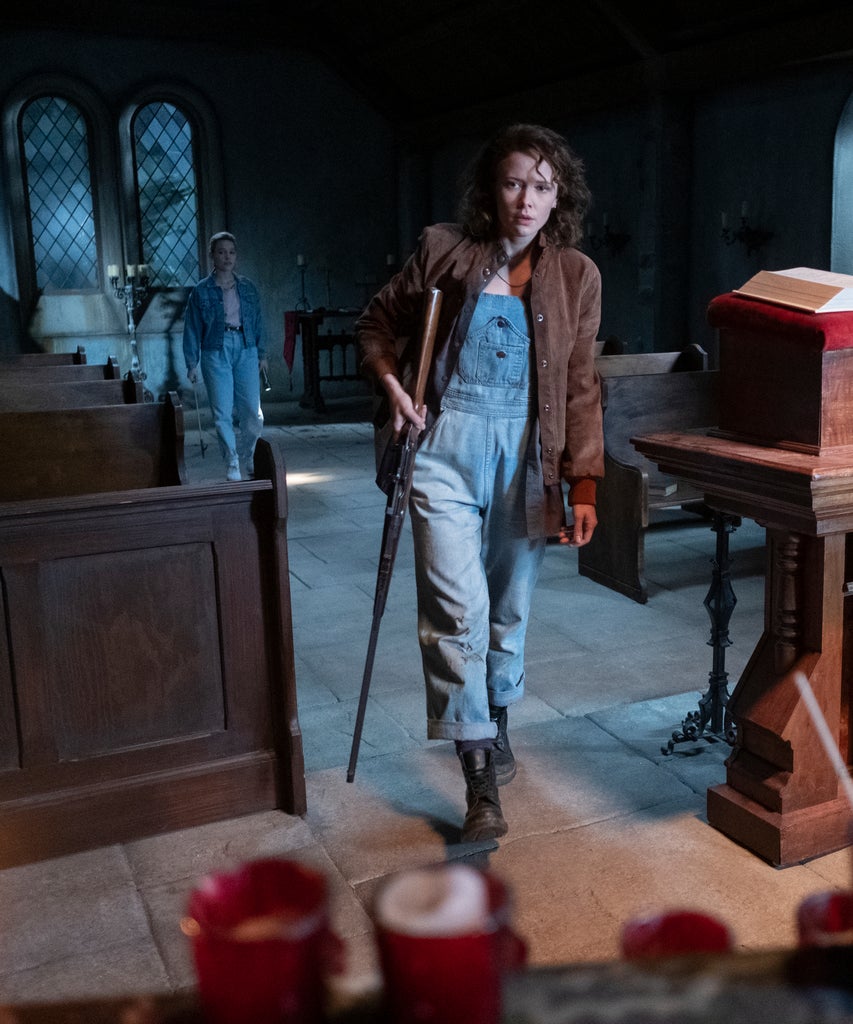 “Beast” reveals why Eve was so emphatic. The episode hinges on the romance between her character and Dani, who flirt throughout Bly’s nine episodes. In the finale, Dani is brought to the very brink of her humanity in order to save her charge, Flora (Amelie Bea Smith). In an effort to stop Bly’s mindlessly malevolent central ghost Viola (Kate Siegel) from drowning Flora, Dani offers to share her body with Viola. This agreement leaves Dani a ticking time bomb — she knows the “beastly” spirit of Viola will eventually possess her in full. One of Dani’s eyes has already changed colour like previously possessed Bly characters, confirming her body is no longer solely her own. Dani, recognising the imminent threat of oblivion, decides to commit herself fully to a happy life with Jamie, for as long as she can keep hold of it.