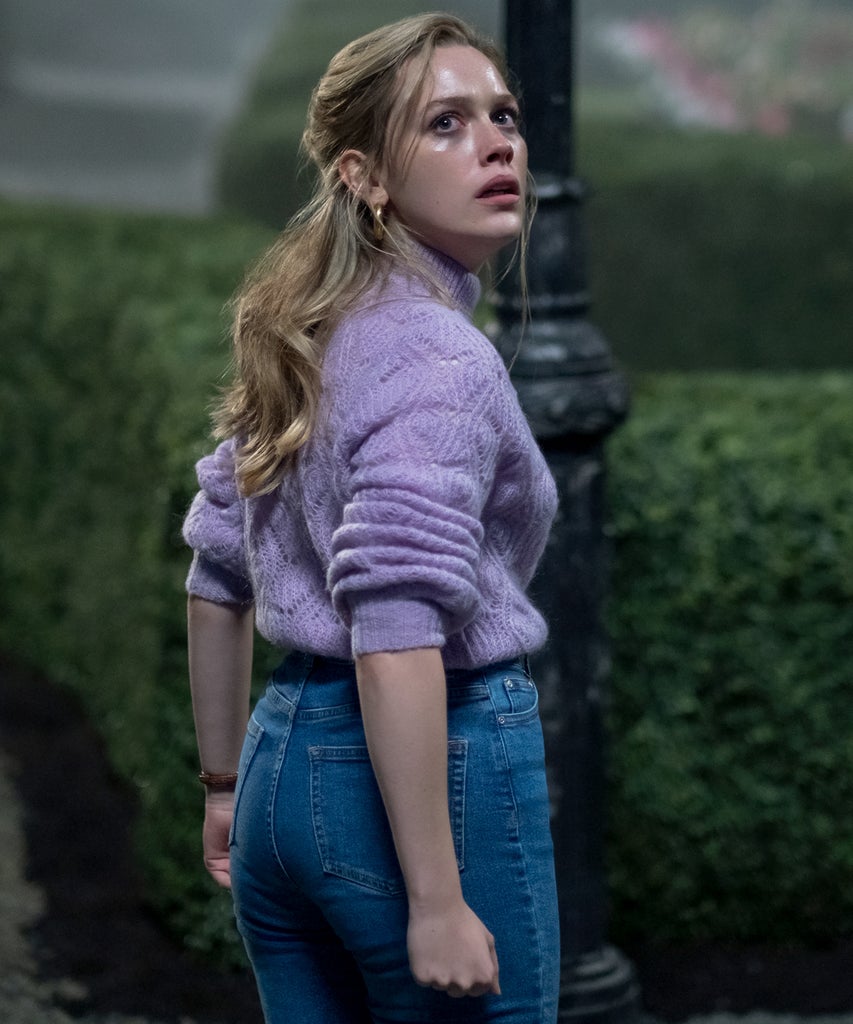 We timehop again, this time to London 1987 where a young woman is on her way to answer an ad placed by Lord Henry Wingrave. His young nephew and niece need a full-time live-in au pair at the family’s estate. With that description by Gugino’s character, we get our first jump scare. Dani Clayton (Victoria Pedretti) nearly gets hit by a car, but look close and you’ll see a ghostlike figure with glowing eyes pop up in the vehicle’s window. She’s scared, but perhaps, not as scared as she should be.