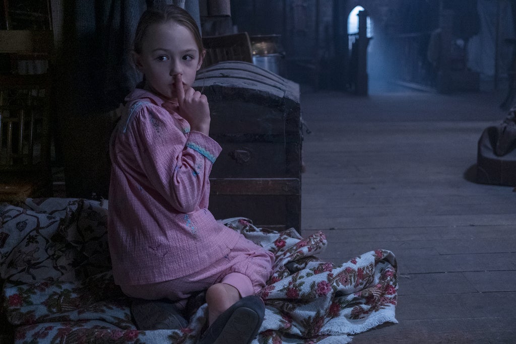 The more you see Miles, the more it seems he’s doing a Peter Quint impression. And the more you see Flora, the more concerned you should be about her singing “O Willow Whaly.” The time jumps back again to see Flora finishing the doll she made of Rebecca. She also tells her au pair how Peter has a thing for her, but it seems like Flora has a thing for him. The two seem to exchange a knowing glance as if they’re up to something.