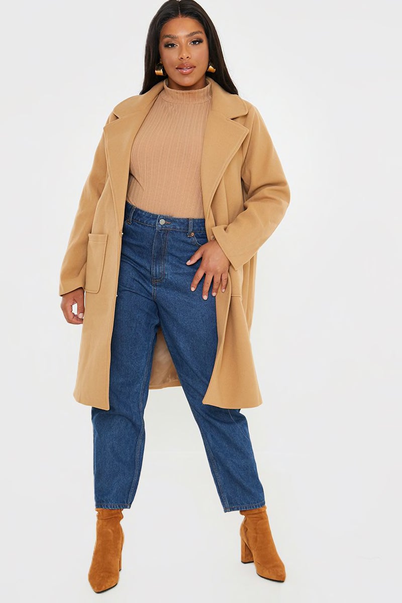 In The Style Curve Camel Faux Wool Boyfriend Jacket, $, available at In The Style