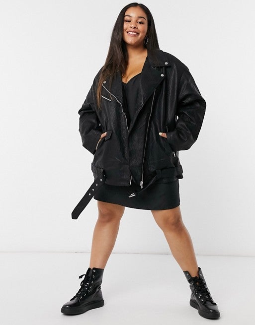 ASOS DESIGN Curve Oversized Leather Look Biker Jacket, $, available at ASOS