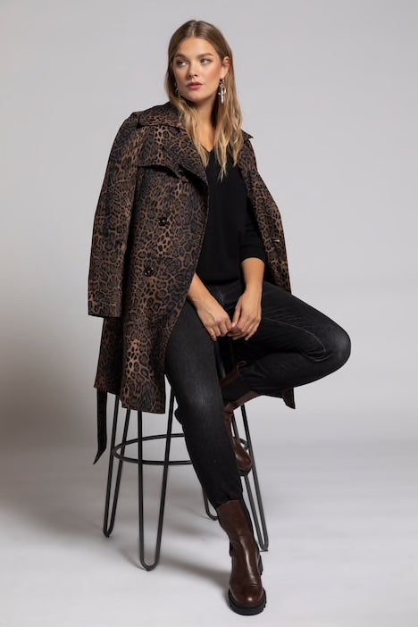 Ulla Popken Leopard Print Fully Lined Stretch Trench Coat, $, available at Ulla Popken