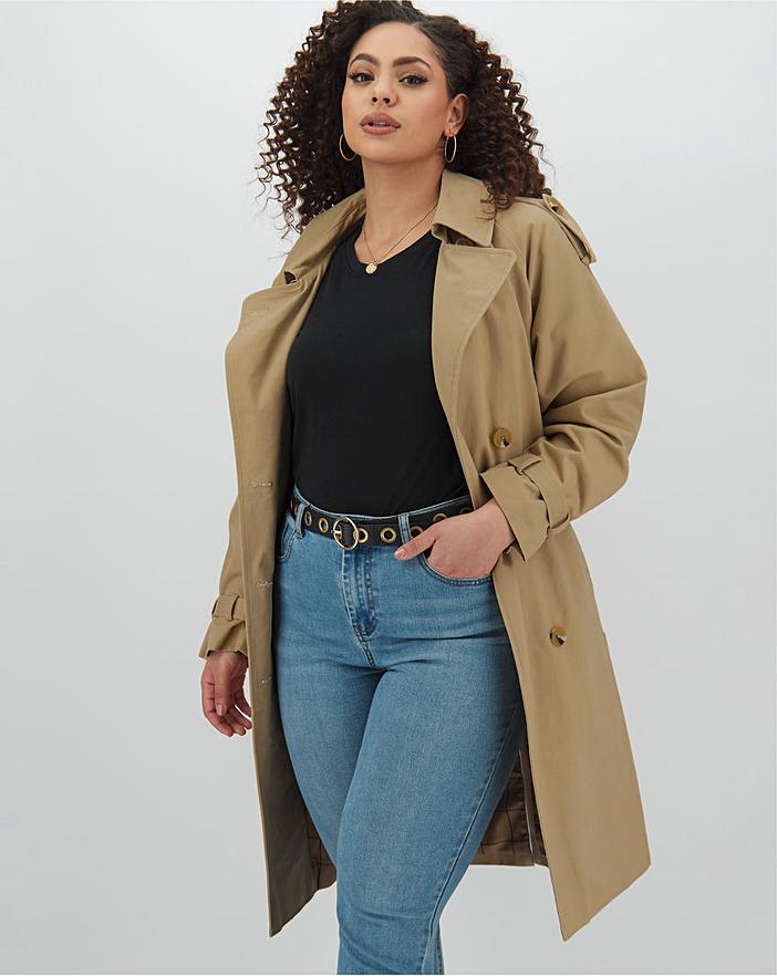 Simply Be Cotton Rich Camel Longline Double Breasted Trench Coat, $, available at Simply Be