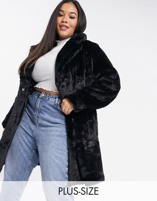 New Look Plus New Look Curve Faux Fur Jacket in Black, $, available at ASOS