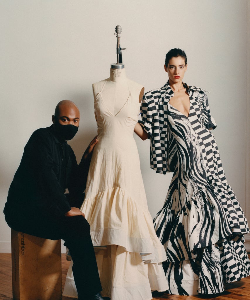 On Friday, New York-based designer and NYFW’s favourite Christopher John Rogers made an announcement that fans of his designs have been asking for since his very first presentation in September 2019. For the first time ever, Rogers’ new collection, which he calls 007, will be available to pre-order online on the just-launched ChristopherJohnRogers.com. Alongside the news, Rogers also released a campaign, shot by Alexander Saladrigas, which shows model Blue Aida being styled by Rogers himself, along with a small team of masked designers, hairstylists, and makeup artists. “Spring 2021 is as much a testament to the endless light that creativity can shine, as much as it is about the tenacity of teamwork and the optimism possible through fashion,” the release states. According to the statement, the campaign imagery was inspired by behind-the-scenes images by Richard Avedon, the iconic fashion photographer who shot everyone from Tupac to Audrey Hepburn and Marilyn Monroe.