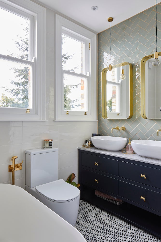 “Pink bathroom”, “navy bathroom” and “gold bathroom” are getting a lot of search traffic, the Houzz experts say. Photographed by Chris Snook