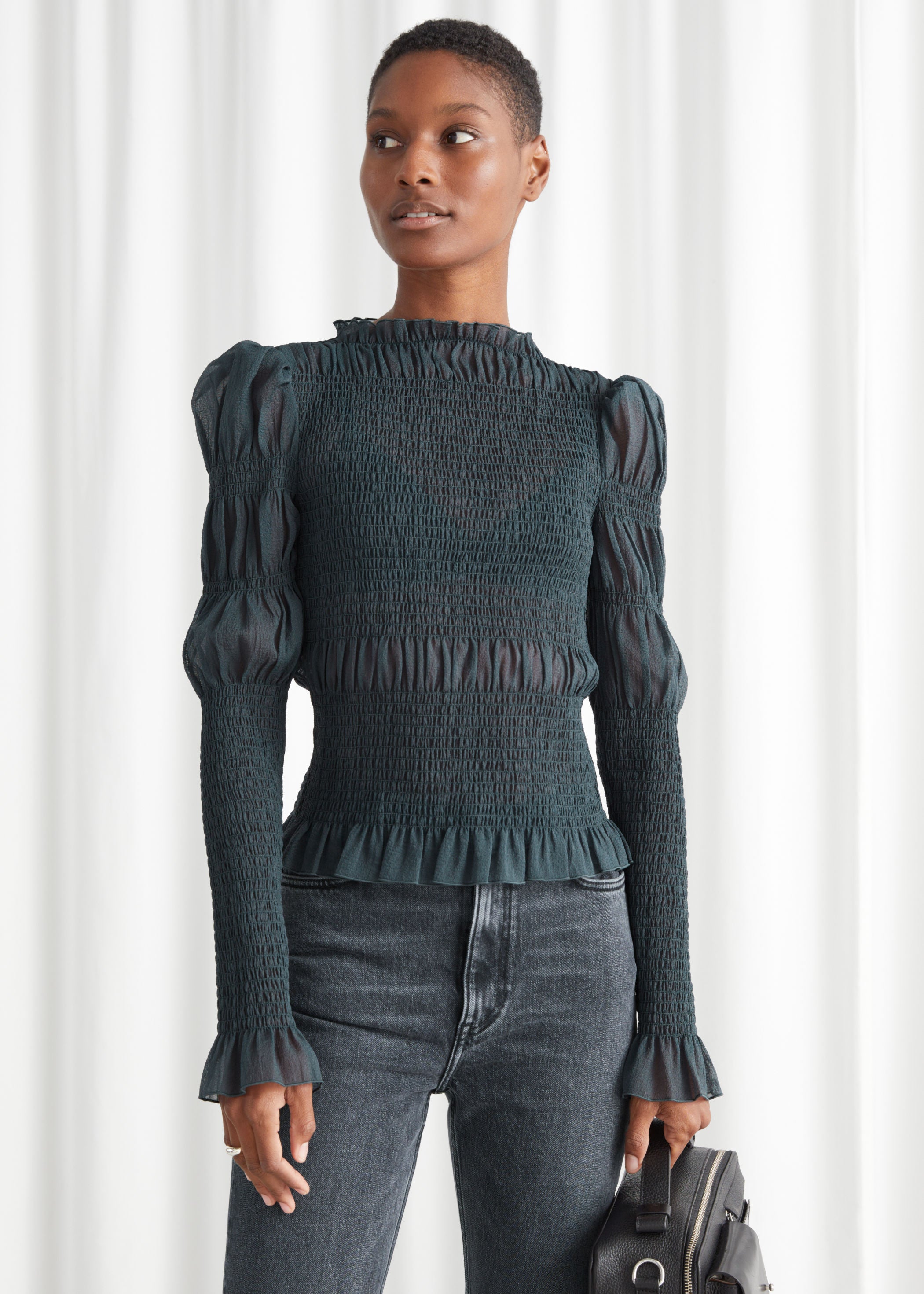 & Other Stories Fitted Smocked Ruffle Top, $, available at & Other Stories