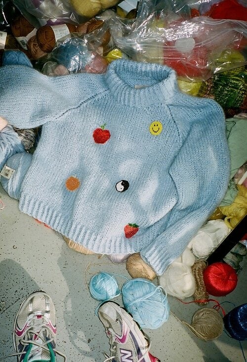 Laura Dalgaard Knit Kit / Blue Crew Neck, $, available at Pura Utz