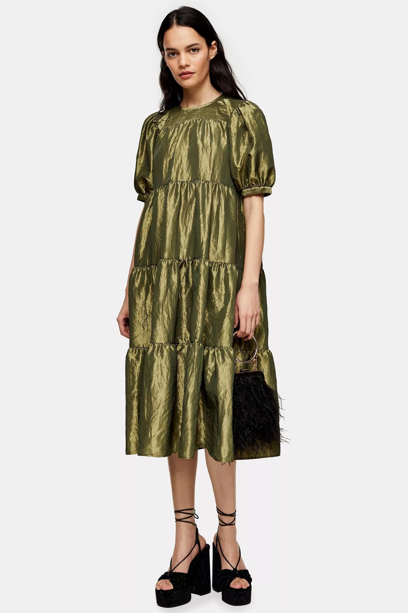 Topshop Green Taffeta Midi Dress, $, available at Topshop