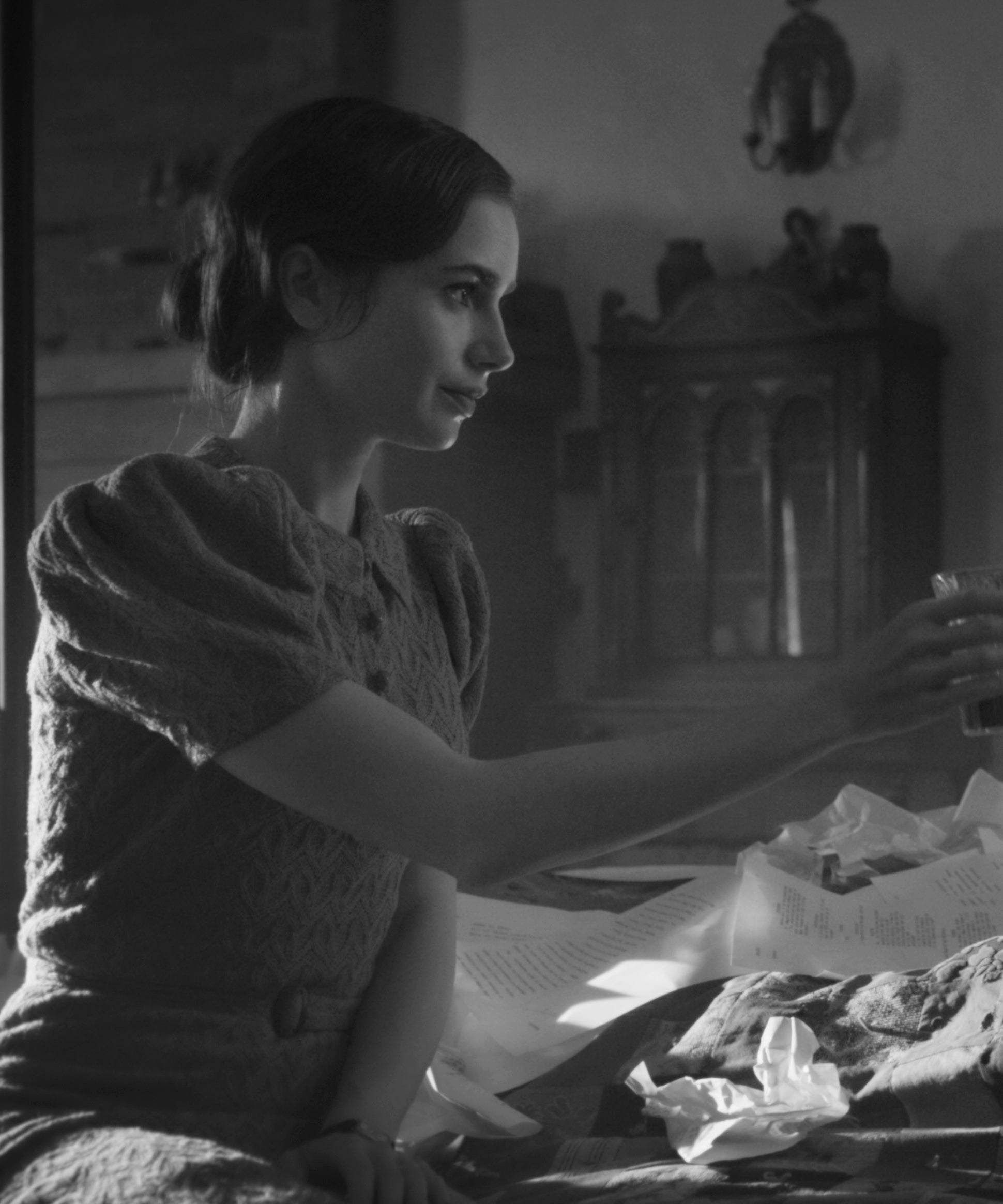 In the movie, Rita is Mank’s private secretary who helps him transcribe his Citizen Kane script while he is recovering from a car accident.
