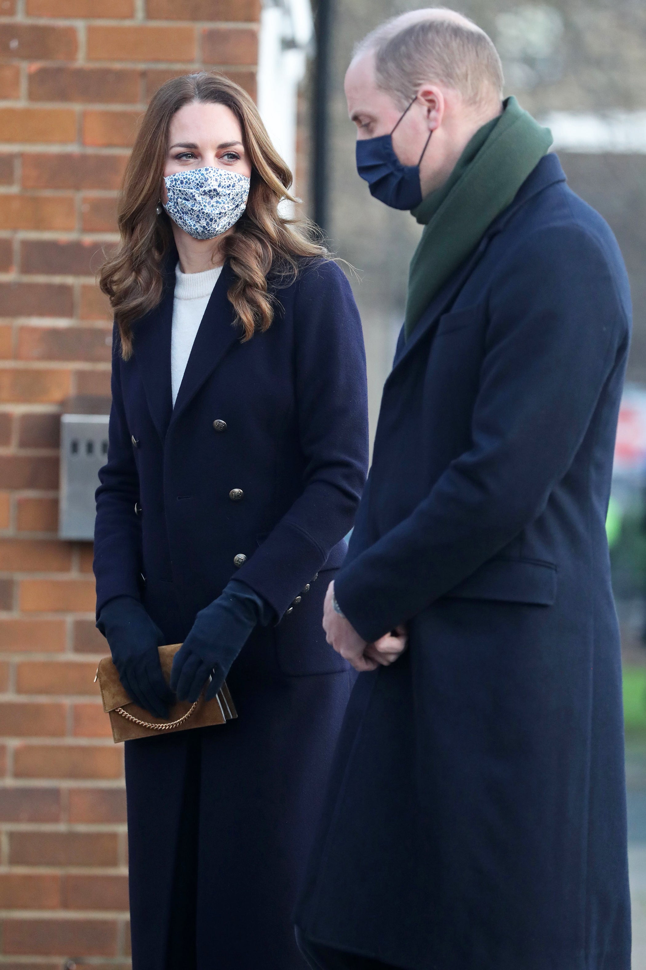 Upon their arrival in Edinburgh, Middleton revealed her second coat of the tour: a bespoke Catherine Walker coat in a very royal shade of blue. This piece, too, has appeared in the past, with the Duchess having worn it in 2018 during a trip to Norway. From there, the couple returned to northern England, where Middleton had her third outfit change of the day. Keeping it in the blue family, she chose a navy blue, Hobbs double-breasted coat with bronze buttons.