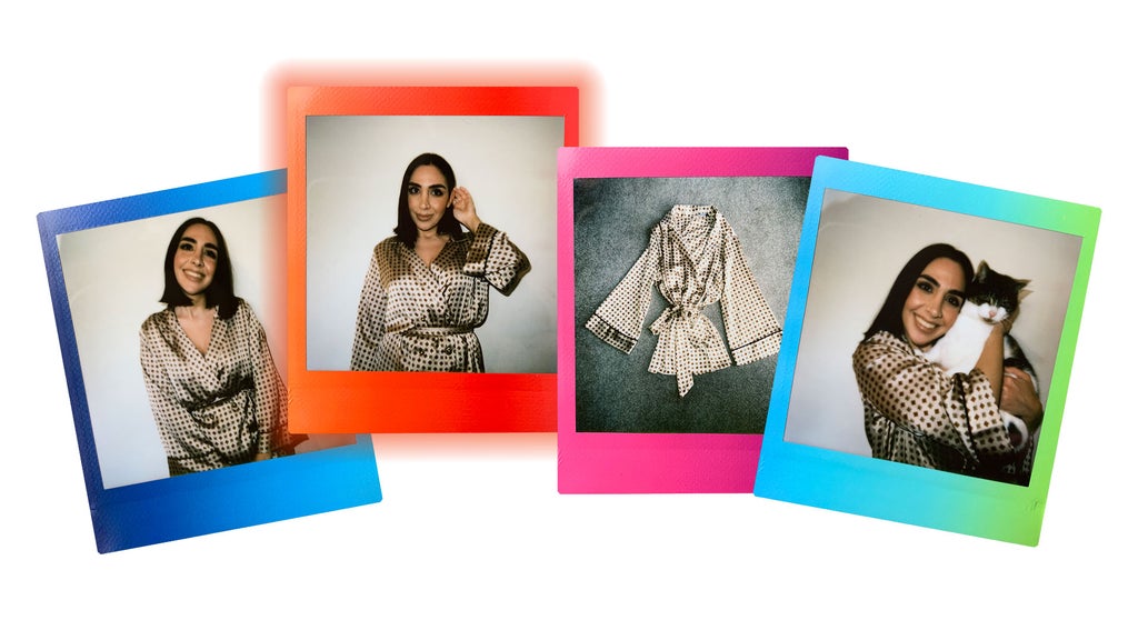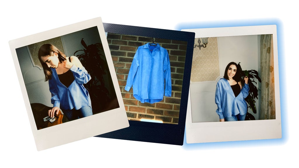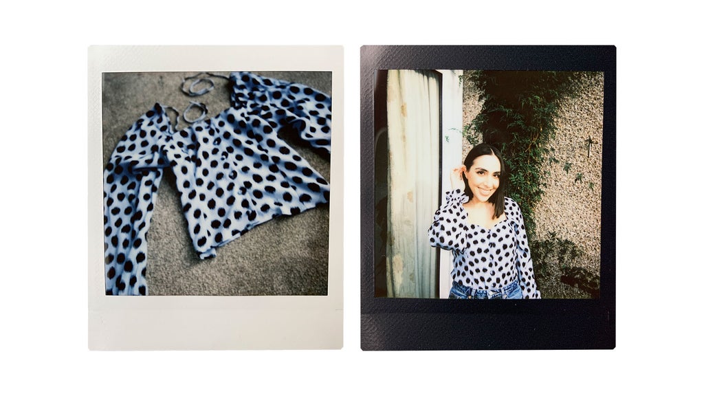 My mum has been trying to give me her collection of vintage silk shirts for years but I’ve always politely declined, thinking they wouldn’t suit me. That said, seeing her ace them around the house, tucked into jeans or worn over floaty trews, has inspired me to expand my WFH regalia, starting with this pyjama-esque printed version. As I watch the instax photo develop, I’m sold, and I think, Could it be…I look chic? Like an actual adult? I realise I should have listened to her a long time ago and consider donating all of my band tees, which only make me look like a moody teen. From now on, my wardrobe will consist of silk shirts and only silk shirts.