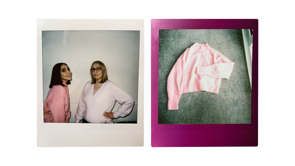 My mum’s knitwear collection is seriously impressive and mine comes in a close second. I never usually wear pastels or bright colours but I’ve noticed that donning something other than black has a distinct effect on my mood, so I take a leaf out of my mum’s multicoloured wardrobe. Today we both accidentally go for baby pink but an eyeshadow palette explosion (beauty editor problems) means I have to change halfway through the day. I team this red rollneck jumper with slouchy checked trousers and my mum approves after I teach her the art of the French tuck. She now French tucks everything.