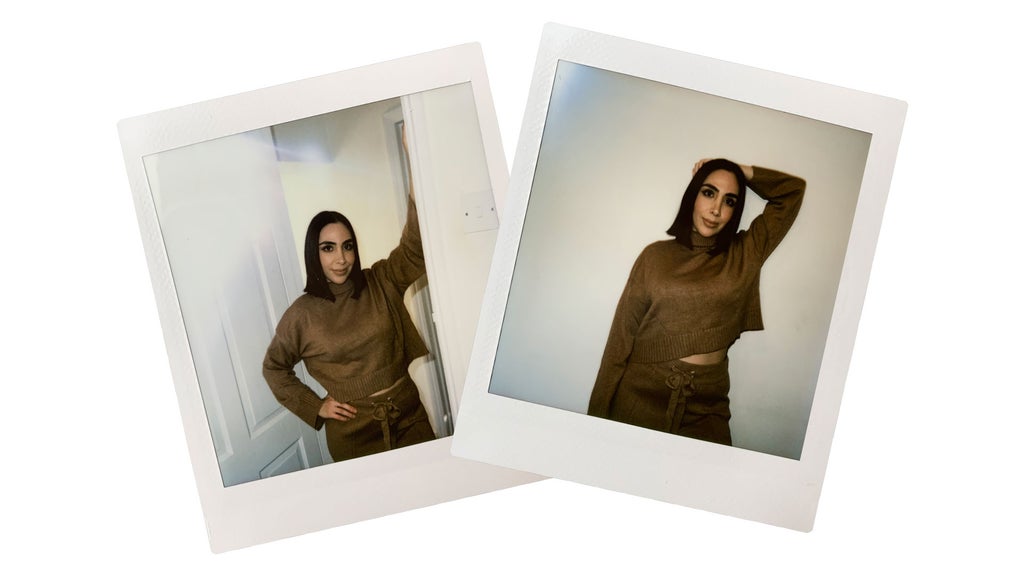 Dress down Friday is still a thing when you’re working from home so I reach for a knitted matching rollneck and trousers, with my mum’s approval. Loungewear usually doesn’t make it onto her fashion radar but since being at home more, she’s loving the laid-back look. Her exact thoughts? “Cute! You look like an influencer!” I’ll take that. I order her the same outfit on next-day delivery and she ends up helping me do a full-on photoshoot with the instax, which is the most fun we’ve had all week.