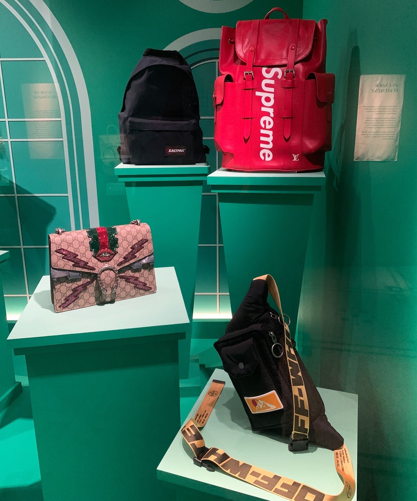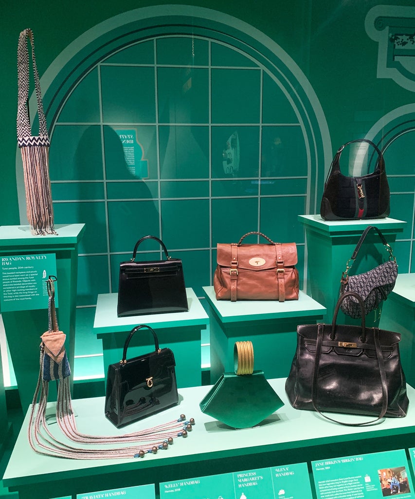 Perhaps it’s an indication of how the pandemic has warped our concept of time but walking around the exhibition, you really see just how significant handbags are as markers of the zeitgeist. It’s hard to believe that the graffitied Louis Vuitton x Stephen Sprouse collection was launched 20 years ago, not only signalling the start of the designer-artist collaboration but kickstarting the high-low, luxury-streetwear aesthetic. Seeing Celine’s Trapeze bag instantly takes you back to its 2010 launch, which spawned the acceleration of high street catwalk copycats (forget the polka dot dress, Zara’s Trapeze rip-off was ubiquitous before the dawn of Instagram). Meanwhile, Anya Hindmarch’s “I’m Not A Plastic Bag” canvas tote reminds us that the move away from single-use plastic has been going for 13 years. While not displayed in chronological order, you leave the exhibition with the feeling that the history of fashion – and our cultural evolution – can be told through handbags alone.