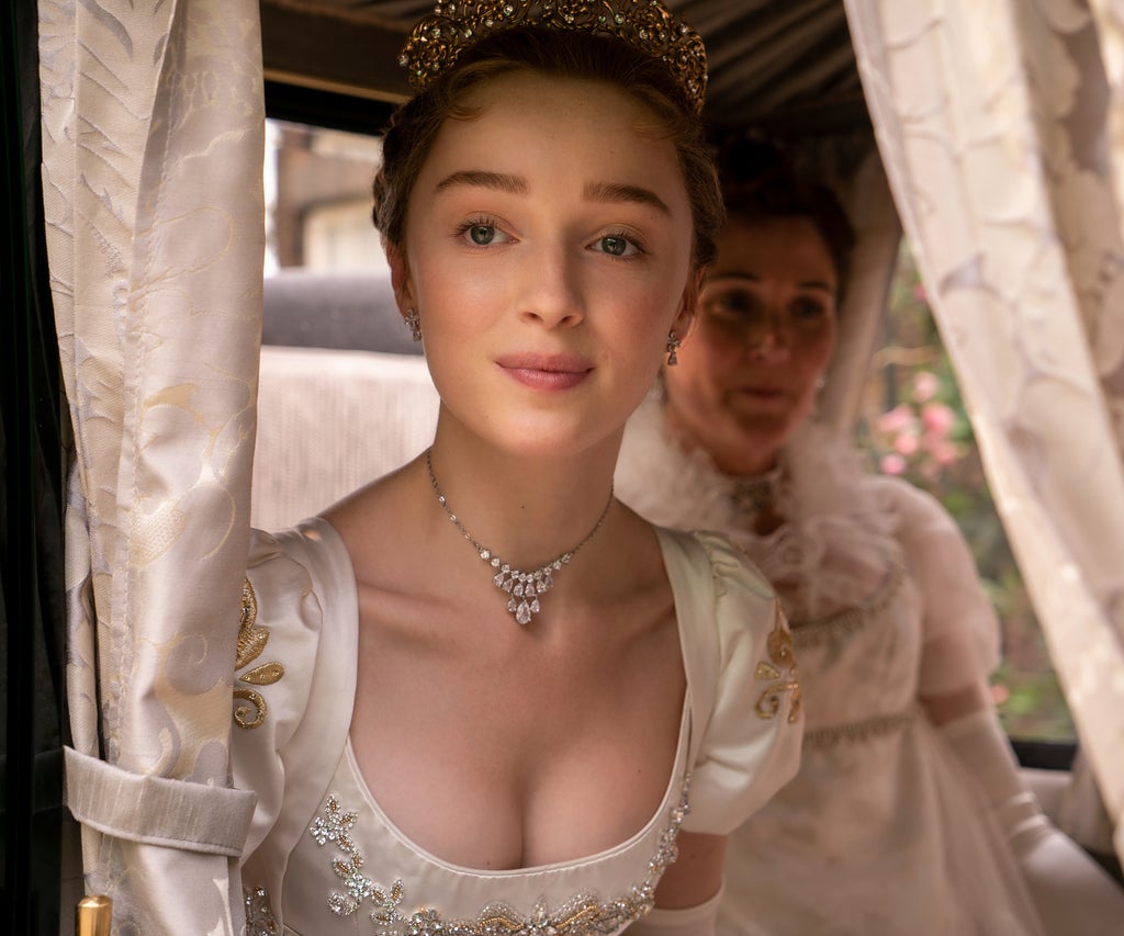 Best Lady Whistledown bon mot: “In a town filled with ambitious mamas and fortune-hunting gentlemen, marrying above one’s station is an art form, indeed. But Miss Daphne Bridgerton’s advance from future duchess to possible princess is an achievement that even this jaded author must applaud.”
